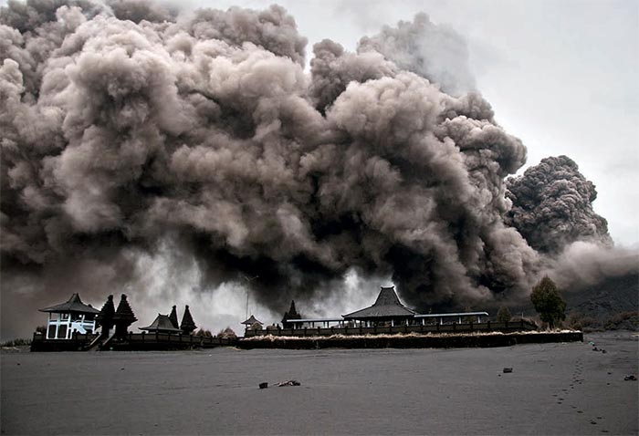 Казалось, меня занесло на незнакомую планету. Все было покрыто пеплом до горизонта. Капуста на полях превратилась в аккуратные серые холмики. Селяне, пользуясь передышкой, очищали дома. Трудились все. Надо было торопиться — достаточно небольшого дождя, чтобы пепел превратился в цемент, под тяжестью которого дом может сложиться, как картонная коробка. Даже трехлетний ребенок, сидя на краю крыши у водосточного желоба, ковырял серую массу детским совочком. Линии электропередачи были повреждены, поэтому к вечеру дома окутал зловещий мрак, изредка рассекаемый то ли вспышками молний, то ли отсветами извержения. Деревня, куда еще недавно множество туристов приезжало полюбоваться на вулкан, переживала не лучшие деньки. Похоже, я был здесь единственным гостем.
