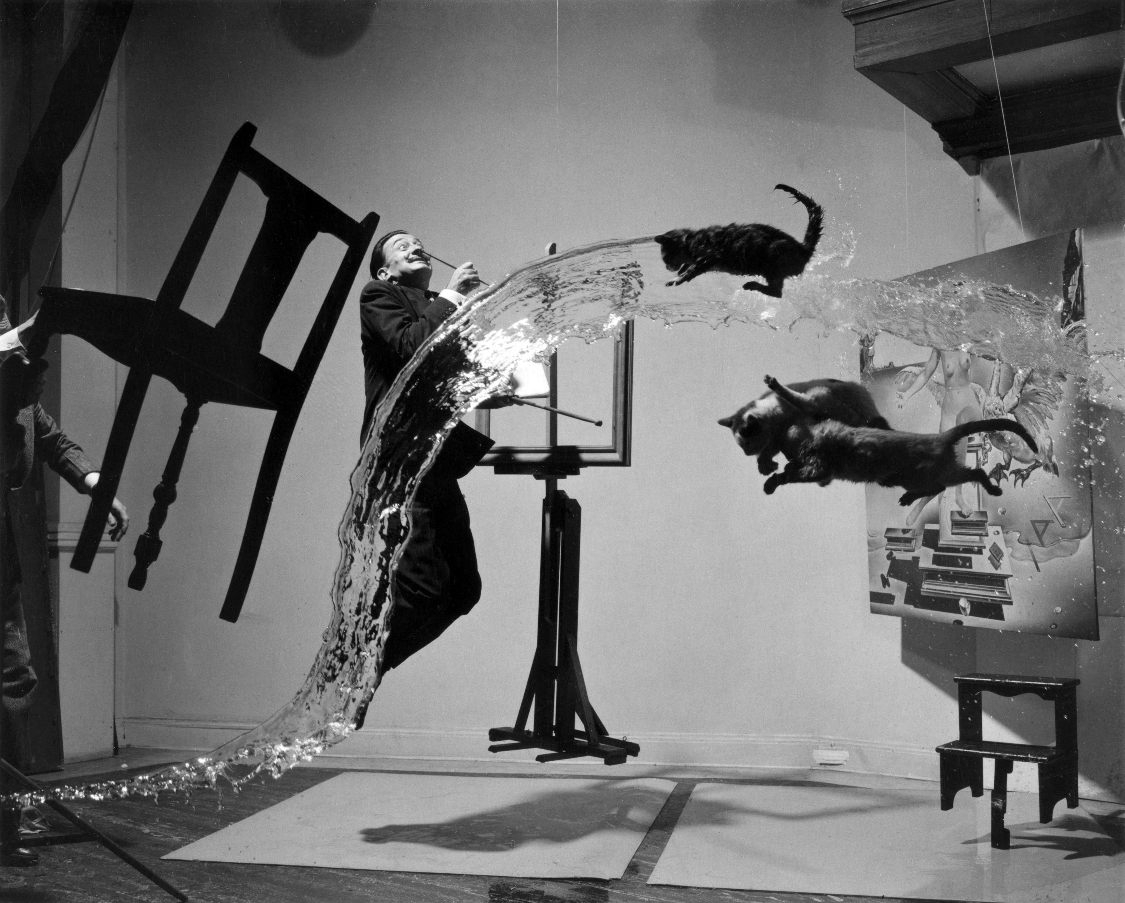 Съемка длилась шесть часов. Кошек подбрасывали 28 раз, однако к финалу они выглядели не такими измочаленными, как люди. Халсман таки добился, чтобы на фотографии в нужных местах оказались только Дали, вода и кошки.