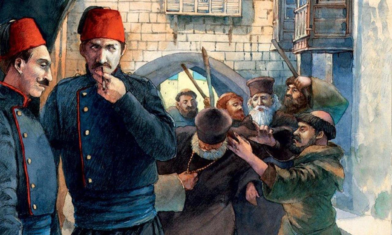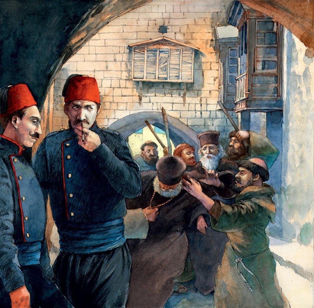 История, повлекшая за собой череду дипломатических демаршей и завершившаяся войной Англии, Франции и Турции против России, началась в Вифлееме вечером 19 октября 1847 года. Греческий епископ Серафим в сопровождении монастырского врача торопился к постели больного прихожанина. Но на одной из узеньких кривых улочек в центре города он столкнулся с группой францисканских монахов.