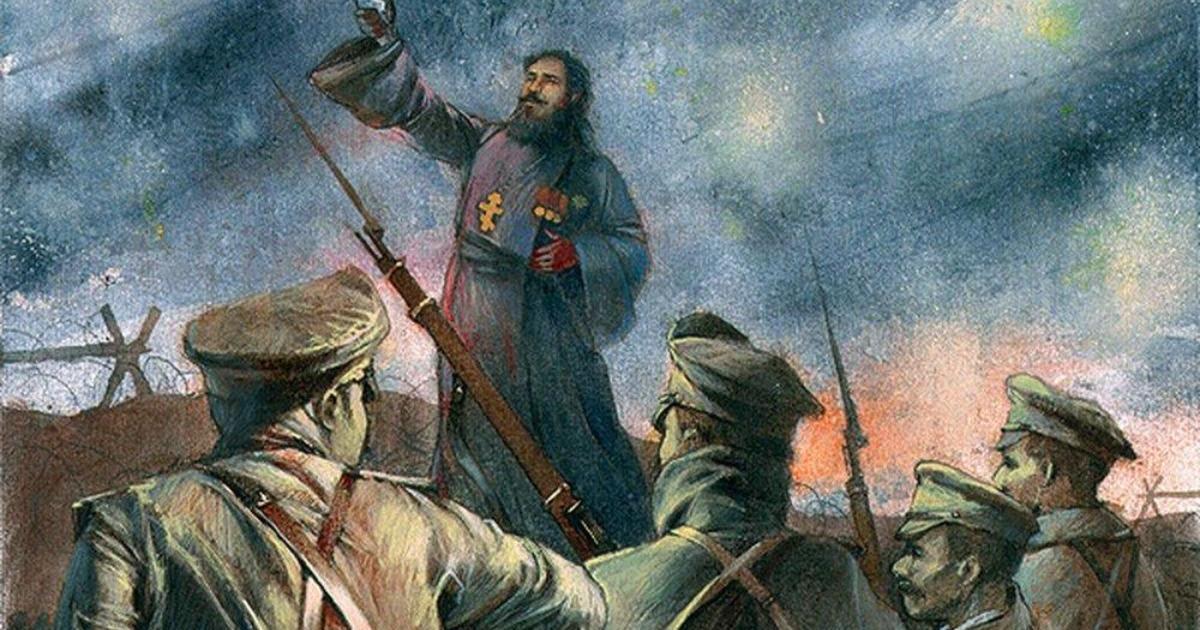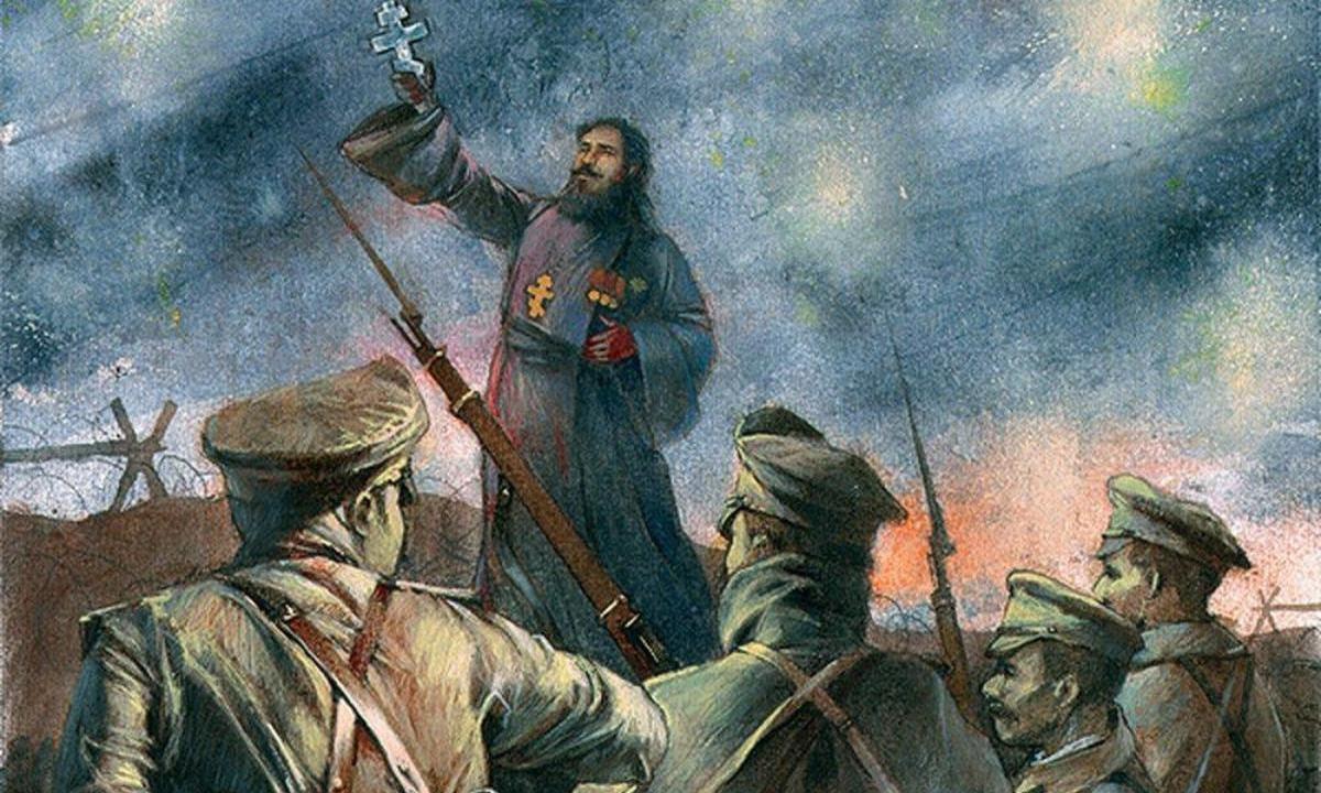 Неудивительно, что с началом Первой мировой Булатович подает прошение, чтобы ему разрешили стать полковым священником. Просьбу удовлетворили, и 5 октября 1914 года отец Антоний отправился на Западный фронт. Потом его перевели в Карпаты, где он не раз демонстрировал воинскую доблесть, поднимая солдат в атаку. Однажды, попав в окружение, он лично повел бойцов на прорыв. С крестом в одной руке и револьвером в другой под любимое «ура» он ворвался на позиции противника, сея панику и смятение.