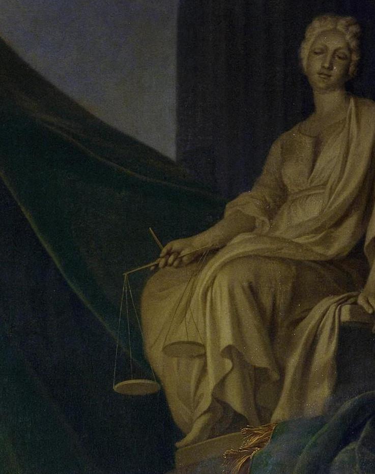 Замысел картины принадлежал художнику, поэту и переводчику Николаю Львову. Императрица представлена жрицей в храме богини Правосудия, следящей за исполнением законов для всеобщего блага. Отчасти сюжет картины перекликается с «Наказом» Екатерины, в котором, следуя идеям французских философов, императрица утверждала принципы равенства всех людей перед законом и выступала за свободу торговли.