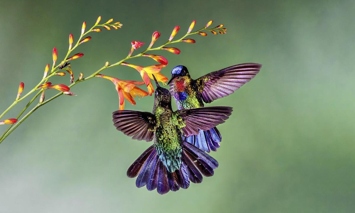 Чтобы рассмотреть новый цветок и решить, стоит ли тратить на него время, а также чтобы до дна выпить его, колибри развили ювелирный по точности полет: научились резко останавливаться, надолго зависать на одном месте, летать задом наперед и даже сверху вниз. Никаким другим птицам такое недоступно.