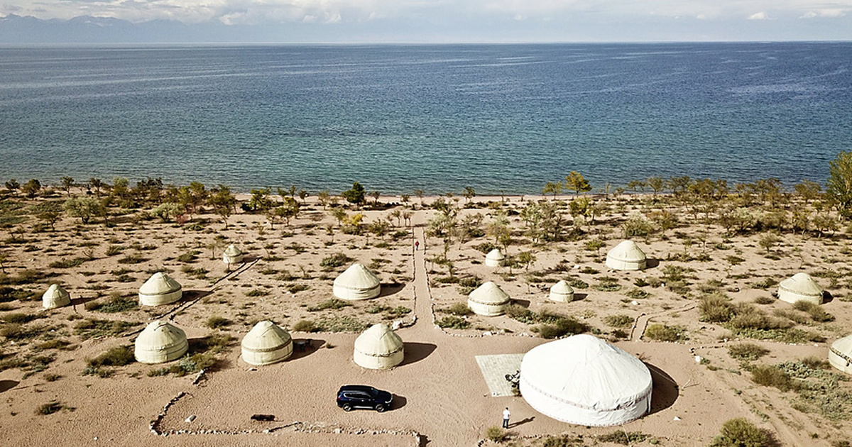 Берег Иссык-Куля. На километр тянется ряд бетонных «юрт», отделанных плиткой, часть которой, правда, уже отвалилась. Юрты соединены между собой стеной с облупившейся краской. По задумке, это культурный центр. Но сейчас все заброшено.