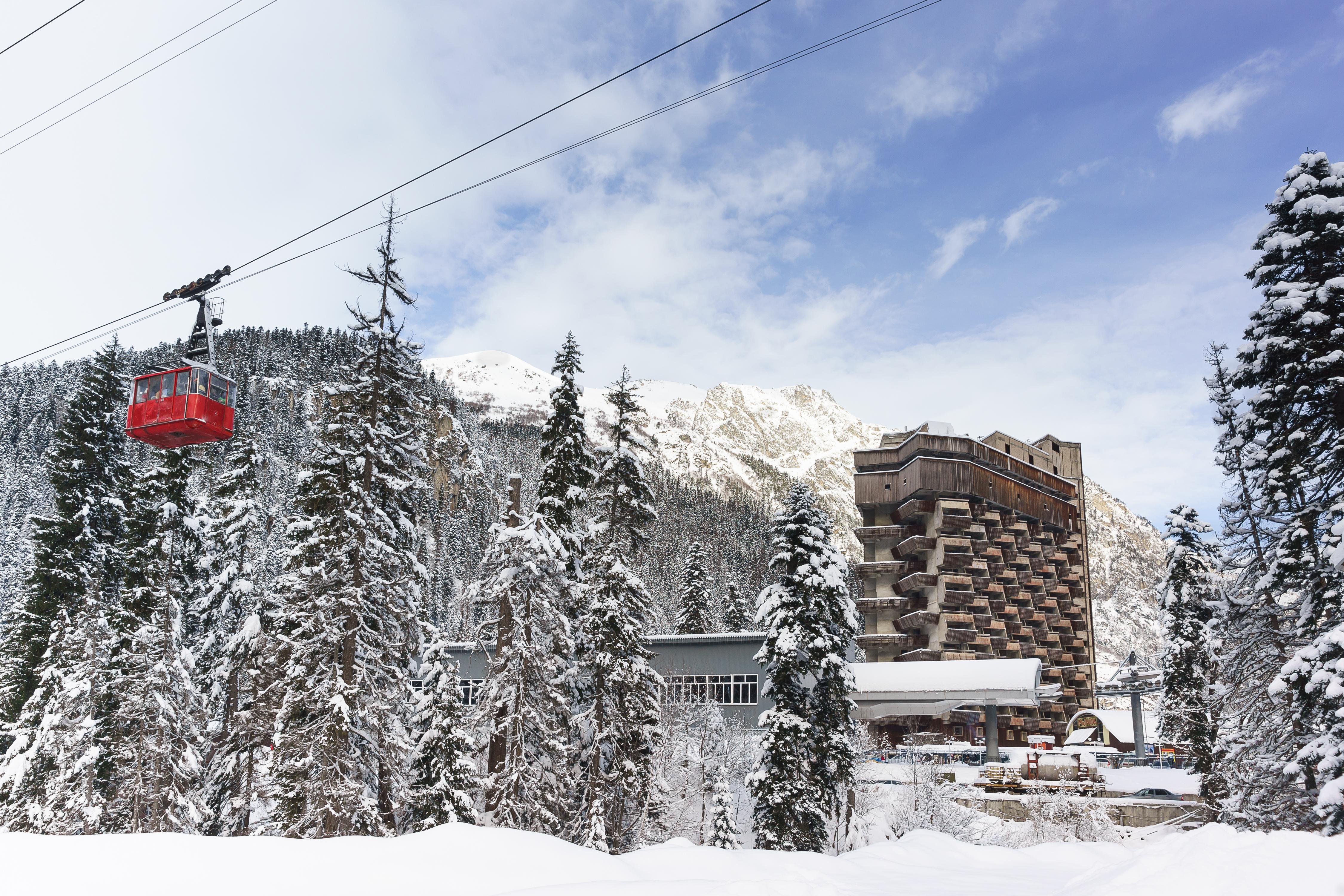 Гостиница занимает площадь 1700 м2 и была рассчитана на 480 номеров. Комнаты были довольно маленькими (около 10 м2), но дополнительное пространство добавляли отдельные балконы, на которые вели панорамные окна до пола — из них предполагалось созерцать красоту горных вершин. Также в здании были спроектированы кинотеатр и концертный зал на 630 мест, развлекательный центр с кафе, ресторан на террасе.