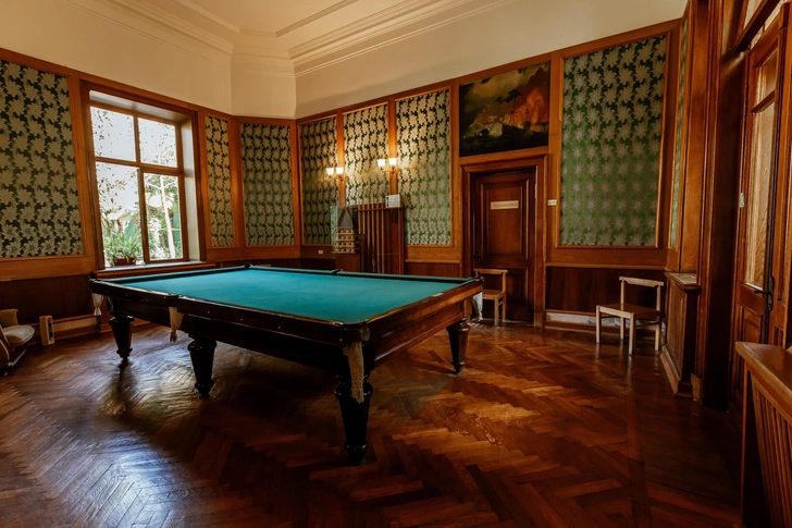 Бассейн с морской водой, бильярд и кинозал — в этих вещах Сталин не изменял привычкам. Сохранились еще шахматы и патефон, а также серебряный письменный прибор, подаренный Мао Цзэ-дуном.
