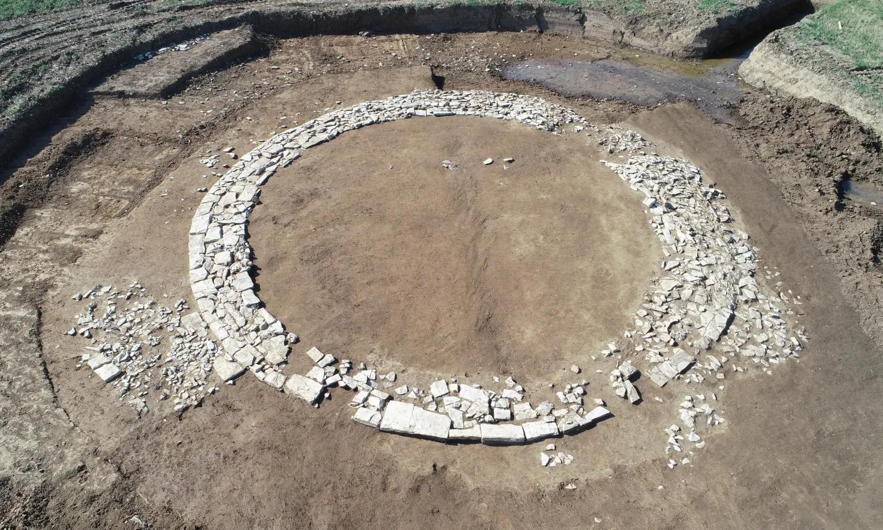 Открытие сделали осенью 2024 года во время строительных работ. Рабочие наткнулись на керамические фрагменты, после чего археологи начали раскопки и выявили огромное каменное основание диаметром около 12 метров. К круглому сооружению примыкал квадратный фундамент — по мнению специалистов, он мог служить основанием для статуи или надгробного памятника.
