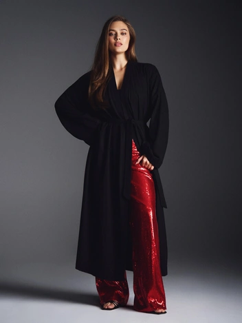 Советуем также обратить внимание на платье «Черный оникс» и кимоно из смесового льна. Классическое вечернее платье с актуальным силуэтом и деликатным приталиванием поможет создать аристократичный новогодний образ, а элегантное черное кимоно не только позволит блистать на корпоративе, но и гармонично впишется впоследствии в повседневный гардероб.