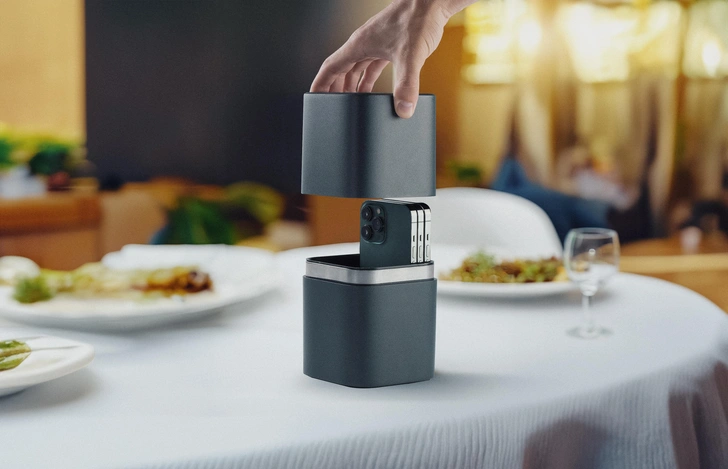 Аксессуар, использующий технологию экранирования электромагнитного поля, вмещает до восьми смартфонов и полностью блокирует все сигналы: сотовую связь, Wi-Fi, Bluetooth, GPS и NFC. Такая капсула пригодится всем кому важны цифровой баланс и безопасное использование гаджетов.