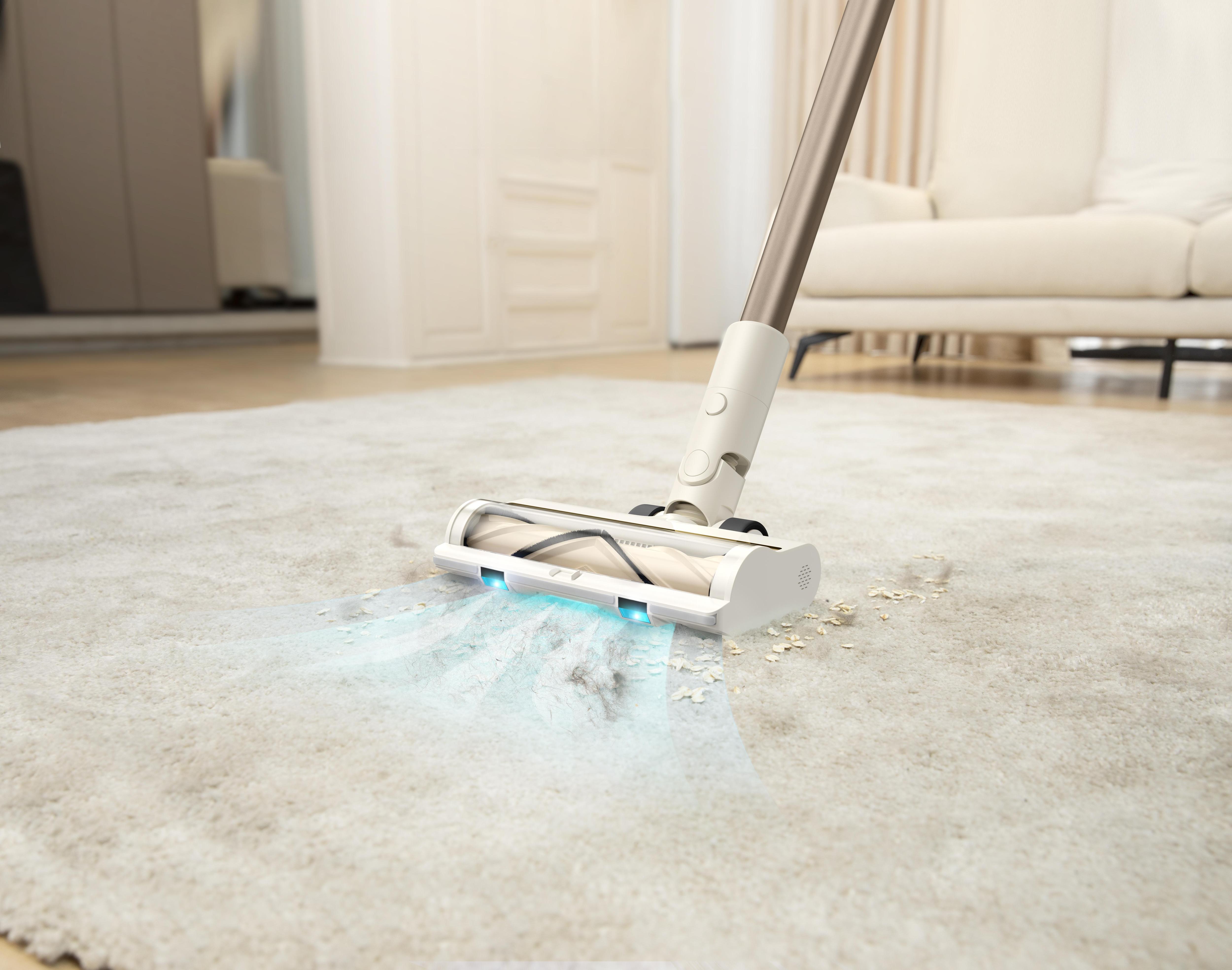 Беспроводной пылесос отлично справляется с такими задачами. Встроенные светодиоды небесно-голубого цвета подсвечивают пространство под мебелью и в узких щелях, делая незаметное — видимым.
