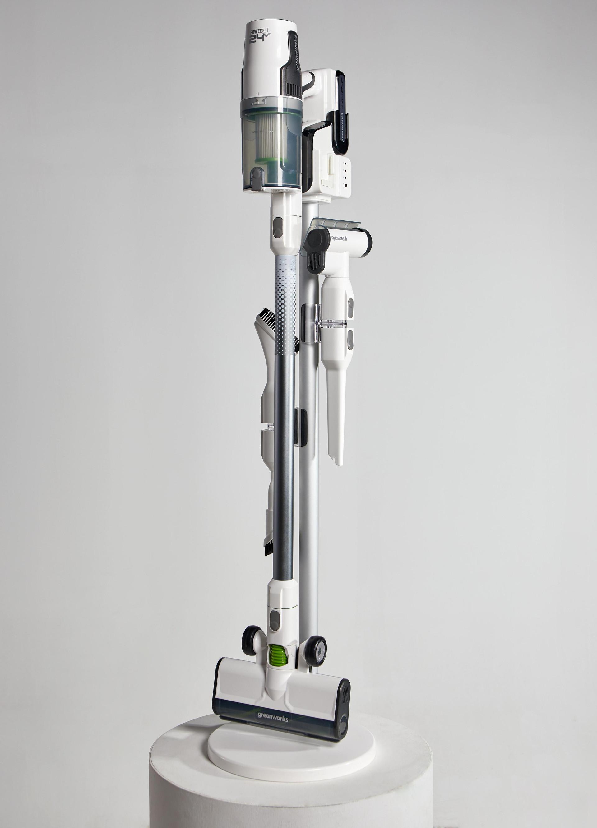 Вертикальный пылесос Greenworks GD24SVD уже несколько лет остается практичным выбором для дома и удачным вариантом подарка. Он оснащен бесщеточным двигателем, обеспечивающим мощность всасывания до 20 000 Па и до 45 минут автономной работы от аккумулятора. Система циклонной фильтрации HEPA 13 задерживает до 99,95% мелких частиц, а сенсорный LED-дисплей помогает контролировать режим работы и уровень заряда.