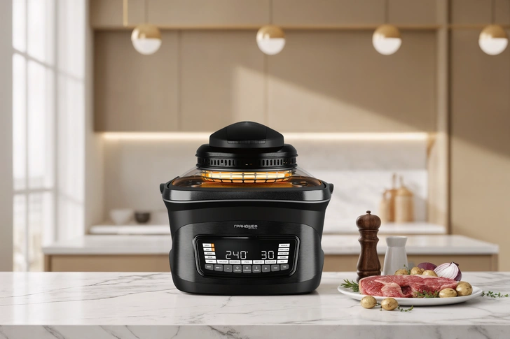 Секрет кроется в двухконтурной системе нагрева общей мощностью 3100 Вт с точной регулировкой температуры, благодаря которой прибор готовит до 40% быстрее классической духовки и равномерно пропекает блюда. Встроенная система «Умный повар» (Smart Cook) позволяет выполнять многоэтапные рецепты в одной 8-литровой чаше, исключая ошибки и гарантируя стабильный результат без лишних усилий и грязной посуды.
