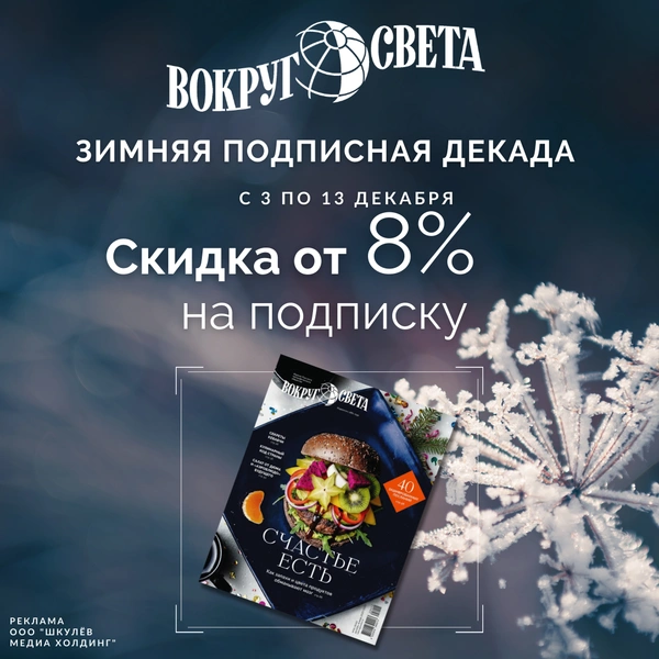 C 3 по 13 декабря 2025 года подпишитесь на журнал «Вокруг света» со специальной скидкой от 8% от редакции! Это можно сделать в любом почтовом отделении и на сайте «Почты России».