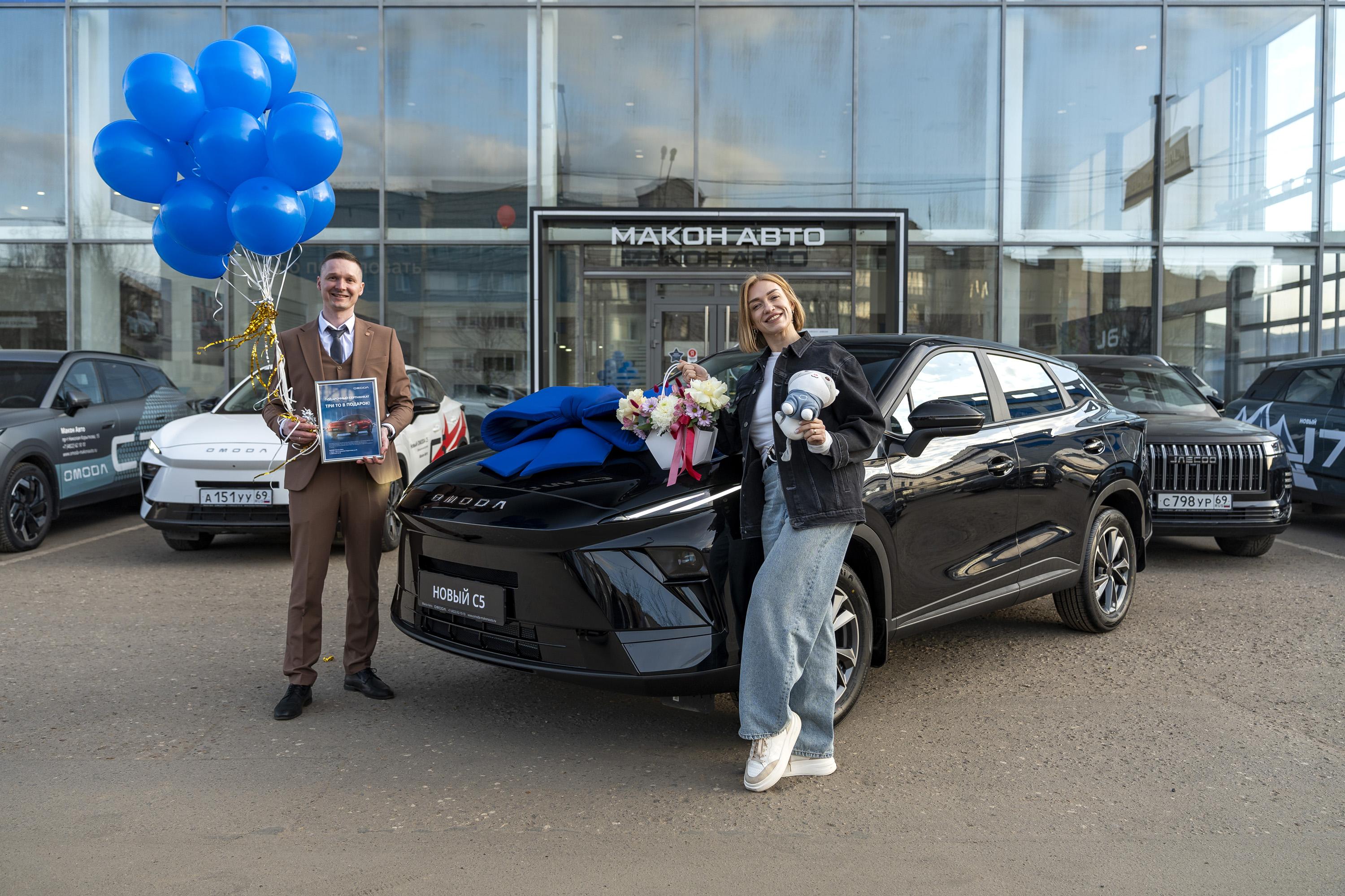 Сделавшая выбор в пользу новейшего поколения кроссовера юбилейная покупательница OMODA C5, Валерия, приобрела автомобиль в дилерском центре «Макон Авто» в Твери. В подарок она получила сертификат на три бесплатных ТО. Для семьи Валерии это уже второй автомобиль бренда — ее муж владеет флагманским JAECOO J7.