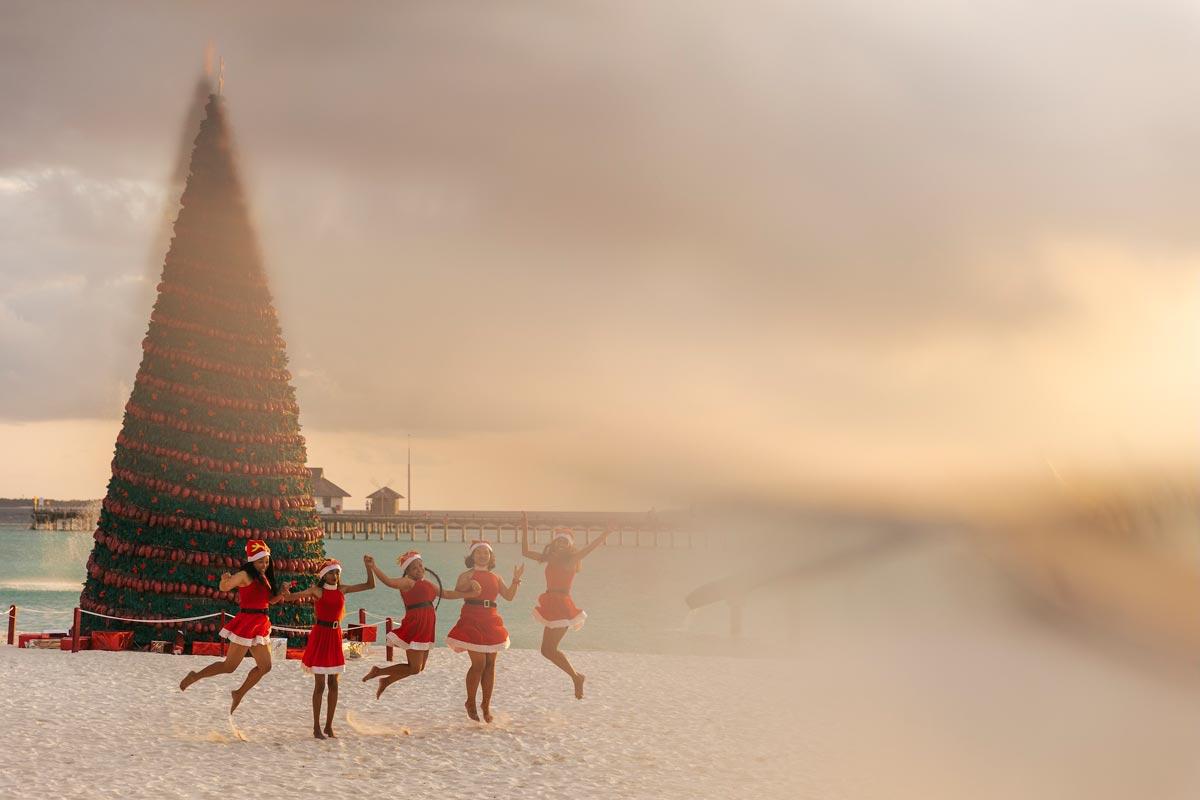 Гостей ждут церемония зажжения ёлки, приезд Санты с подарками, гала-ужины в ресторанах Iru,Trio и Flavours, а также атмосферные пляжные вечеринки.