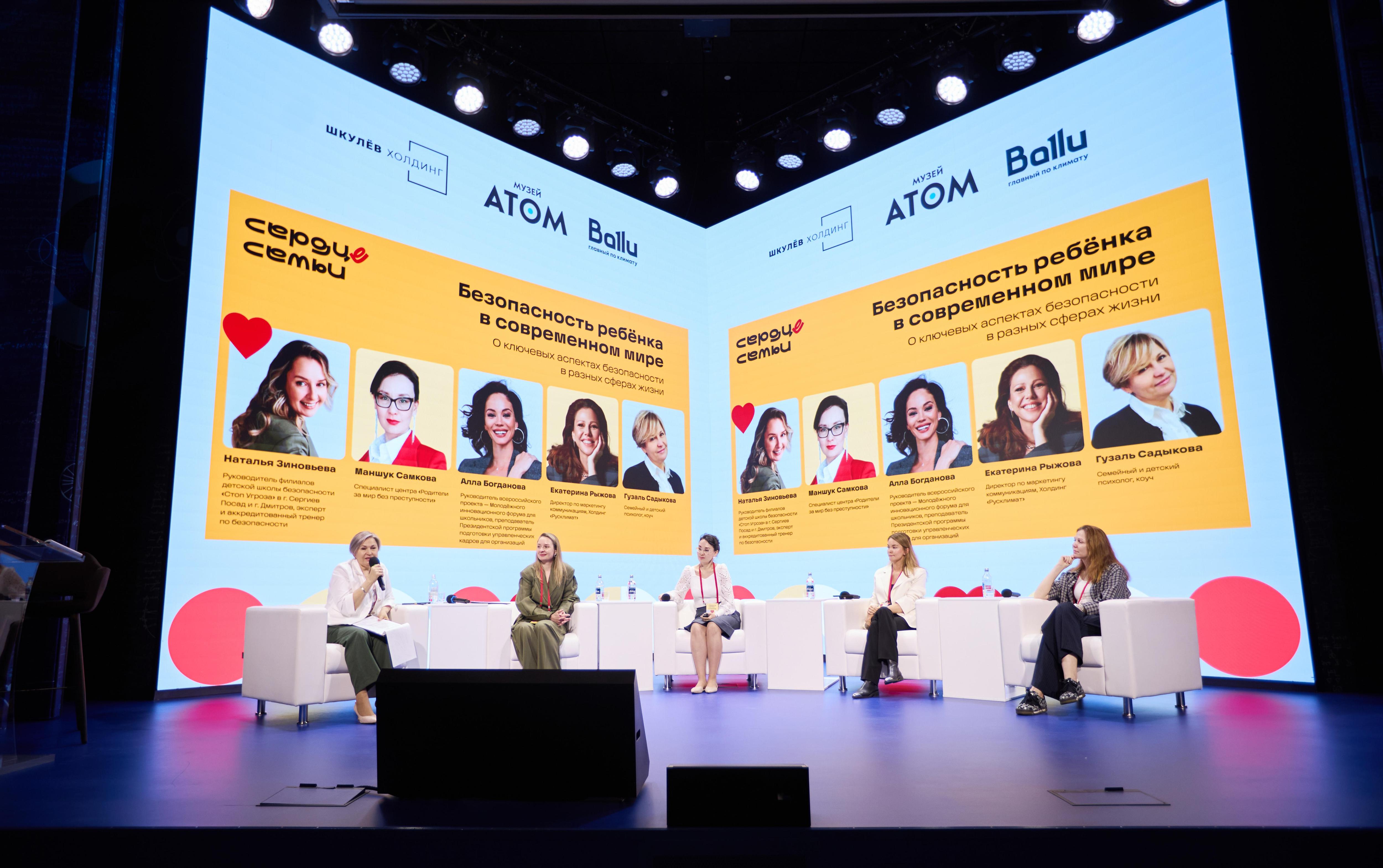 Тему безопасности обсудили на сессии «Безопасность ребёнка в современном мире» под модерацией Гузаль Садыковой — коуча, семейного и детского психолога. Среди спикеров: Екатерина Рыжова, директор по маркетингу и коммуникациям холдинга «Русклимат», Наталья Зиновьева, руководитель филиалов школы безопасности «Стоп Угроза», эксперт и тренер по безопасности, Алла Богданова, генеральный директор «Центра поддержки культурных, социальных и технологических проектов», Маншук Самкова, специалист центра «Родители за мир без преступности». Эксперты обсудили безопасность как систему — от дома и города до цифровой среды и первых самостоятельных решений ребёнка.