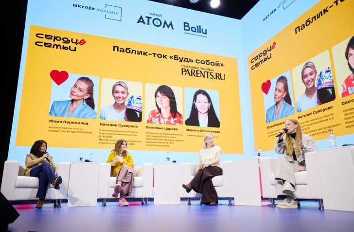 Спикерами выступили: Юлия Пересильд — актриса театра и кино, учредитель фонда «ГАЛЧОНОК», Светлана Царева — координатор образовательных программ детского сада Европейской гимназии, педагог, ведущая подкаста «Что случилось в школе», Наталия Суворова — 5 кратная чемпионка России, участница Олимпийских игр 2016/2020, мастер спорта международного класса по велоспорту BMX и Марина Великанова — главный редактор Parents.ru.