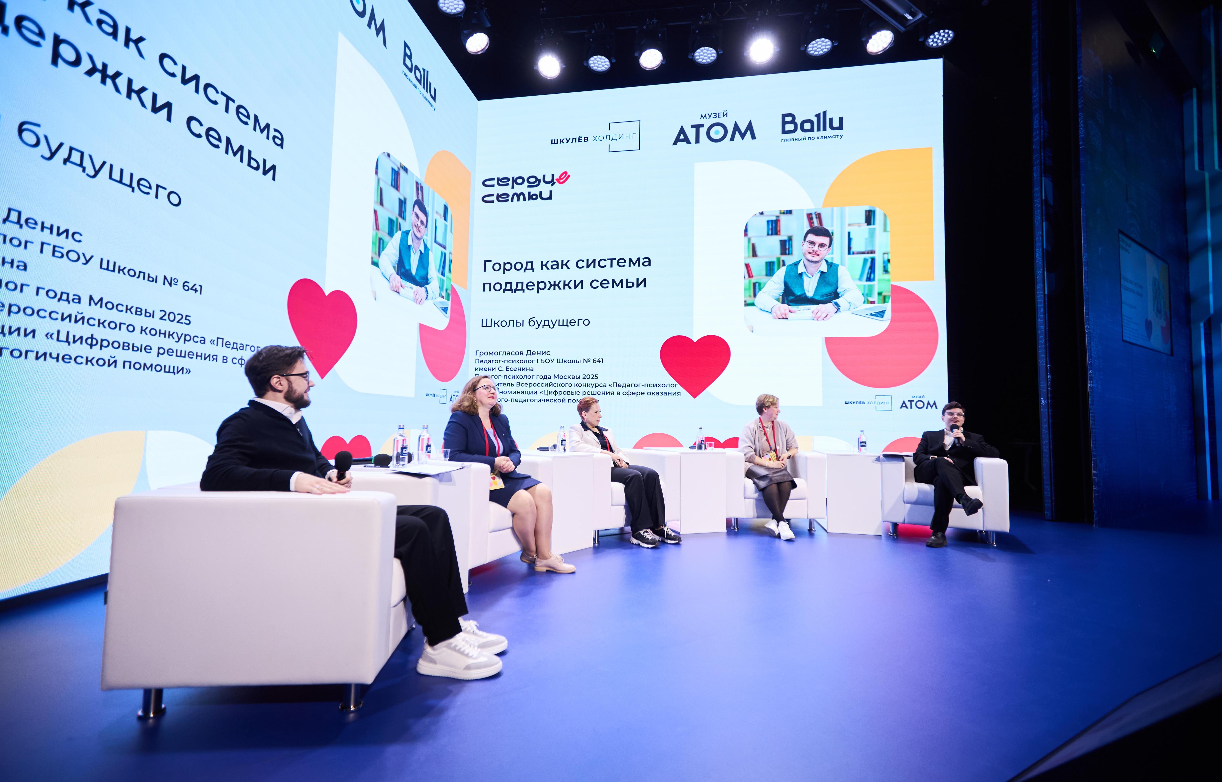 В сессии «Детство в большом городе», посвящённой тому, как растить ребёнка в ритме мегаполиса и какие возможности и поддержку даёт город семье, приняли участие: Денис Громогласов, победитель конкурсов «Педагог-психолог года Москвы» и «Педагог-психолог — 2025», Наталья Макенова, бизнес-консультант в сфере частного образования, сооснователь и ex-директор монтессори-центра SAMI, Дина Сергеевна Русинова, главный врач детской городской поликлиники № 133, и Наталья Аристова, руководитель коммуникационного блока РОО «Объединение многодетных семей города Москвы».