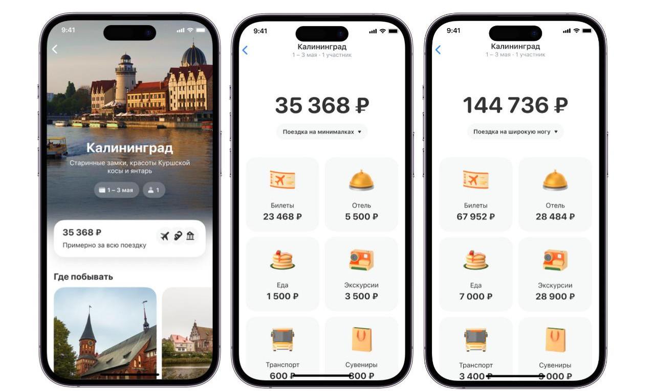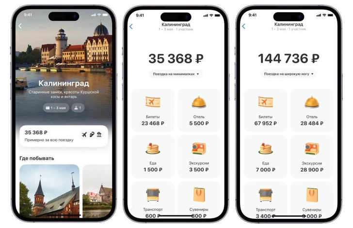 После этого система сформирует ориентировочный бюджет по трем уровням расходов: минимальный, средний и расширенный. В каждый из них включены цены на авиабилеты и проживание, расходы на питание, транспорт и досуг. Это позволяет пользователю сопоставить формат поездки с финансовыми возможностями еще до покупки билетов и бронирования отеля.