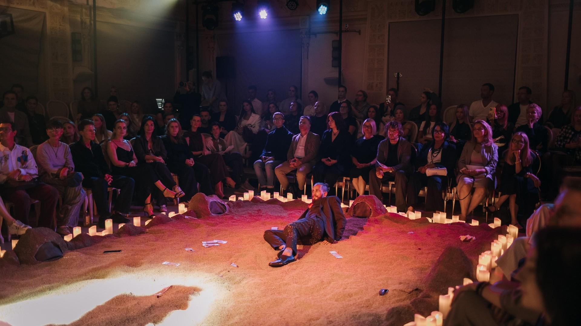 На сцене — звездный каст театра: Виктория Исакова, Андрей Заводюк, Анна Бегунова, Борис Дьяченко и многие другие.