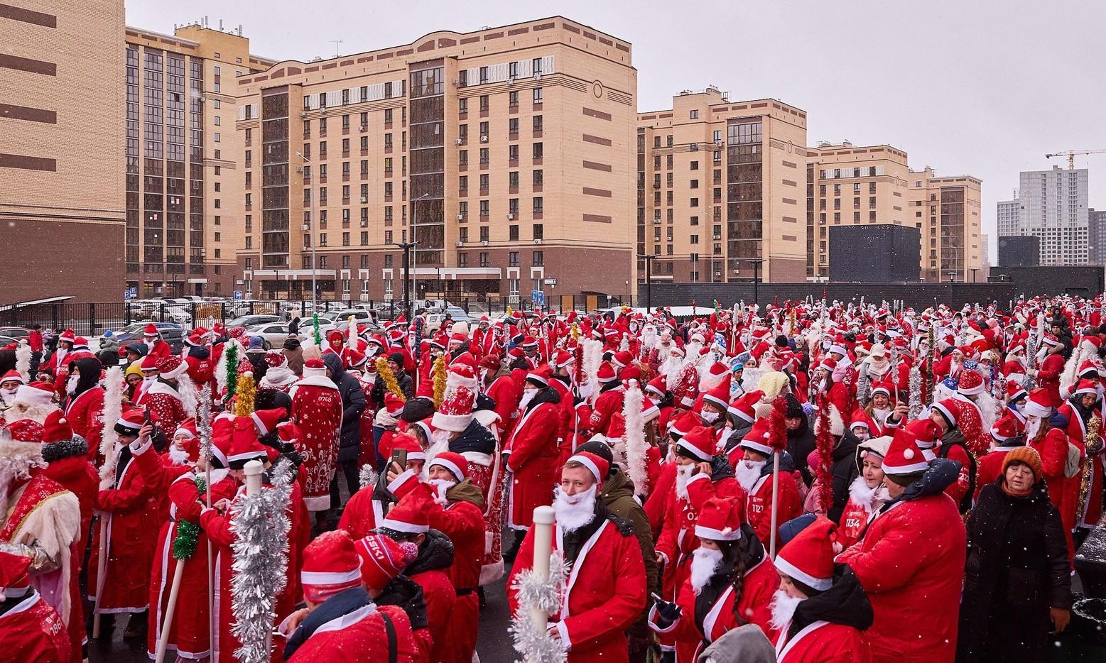 6 декабря в Тюмени 1309 человек переоделись в Дедов Морозов и прошли торжественным маршем вокруг нового жилого комплекса. Мужчины, женщины и даже дети были в полном обмундировании — с бородами, посохами и в кафтанах. Участники побили шестилетний рекорд Кузбасса, где в 2019-м собрали 1279 Дедов Морозов. На мероприятии царила волшебная семейная атмосфера, а гостей угощали горячим чаем.