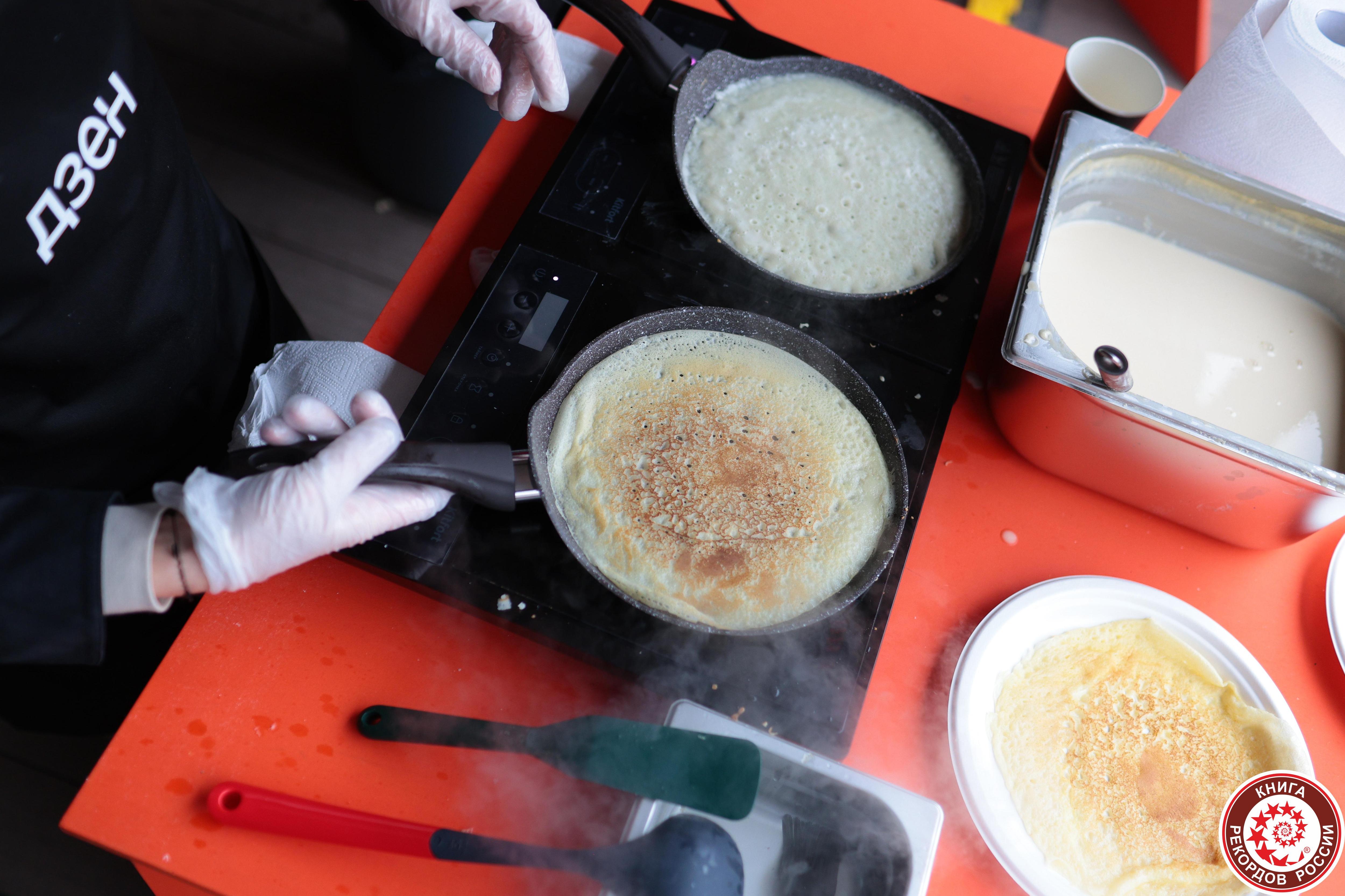 На Масленицу команда из 15 поваров во главе с известными шефами устроила блинный марафон. 2 марта в московском фудмолле «Три вокзала. Депо» за час испекли 1065 блинов. Предыдущий рекорд держался с 2018 года, когда в Рязани приготовили 712 штук — в 2025 его побили с запасом. На все ушло 331 яйцо, 84 литра кефира, 51 килограмм муки и 6 килограммов сахара. Берите на заметку, если планируете накормить целую толпу.