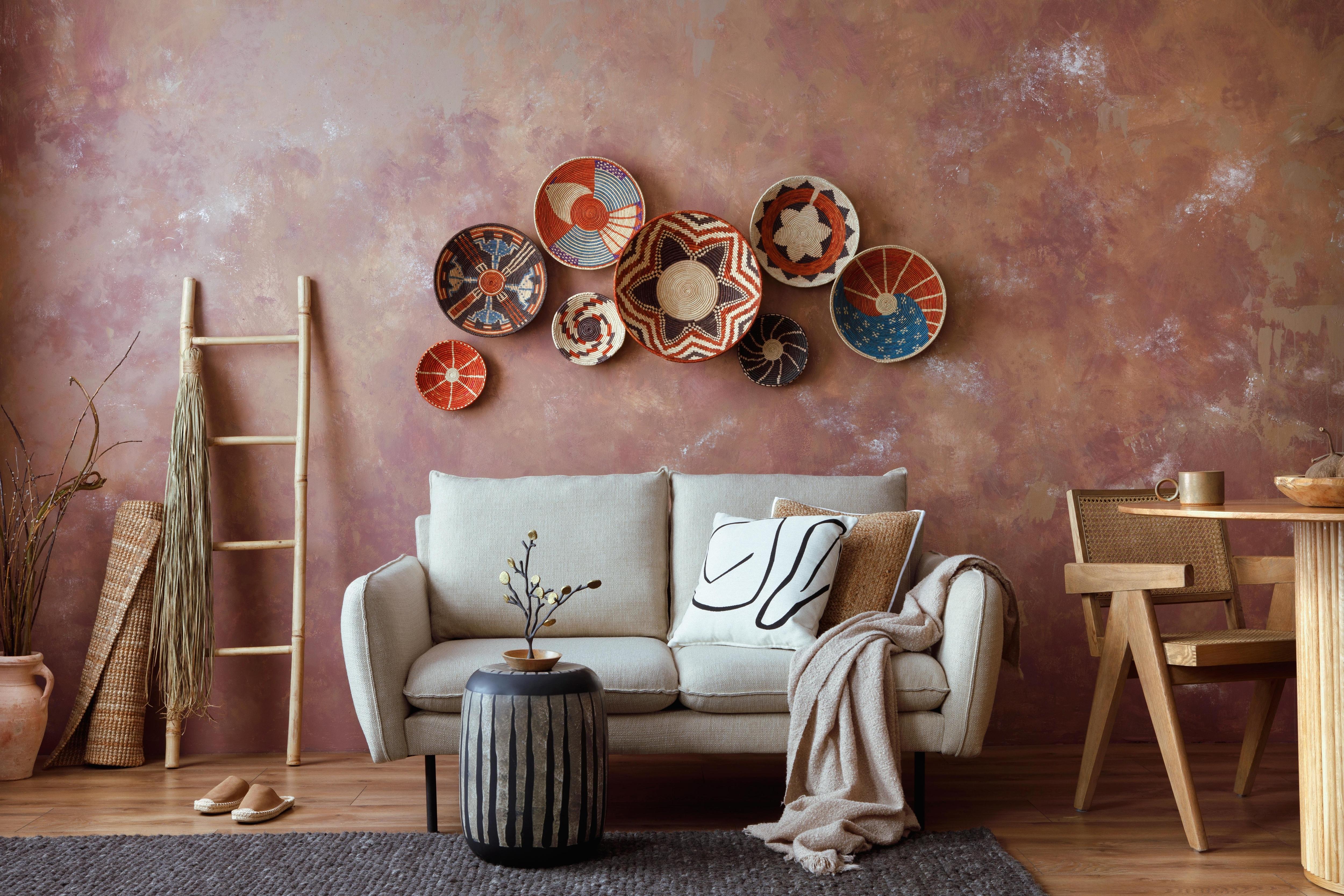 Коричневые, терракотовые, охристые. Эти оттенки отлично вливаются в интерьеры с натуральными материалами, где есть темное дерево, ротанг, камень, керамика