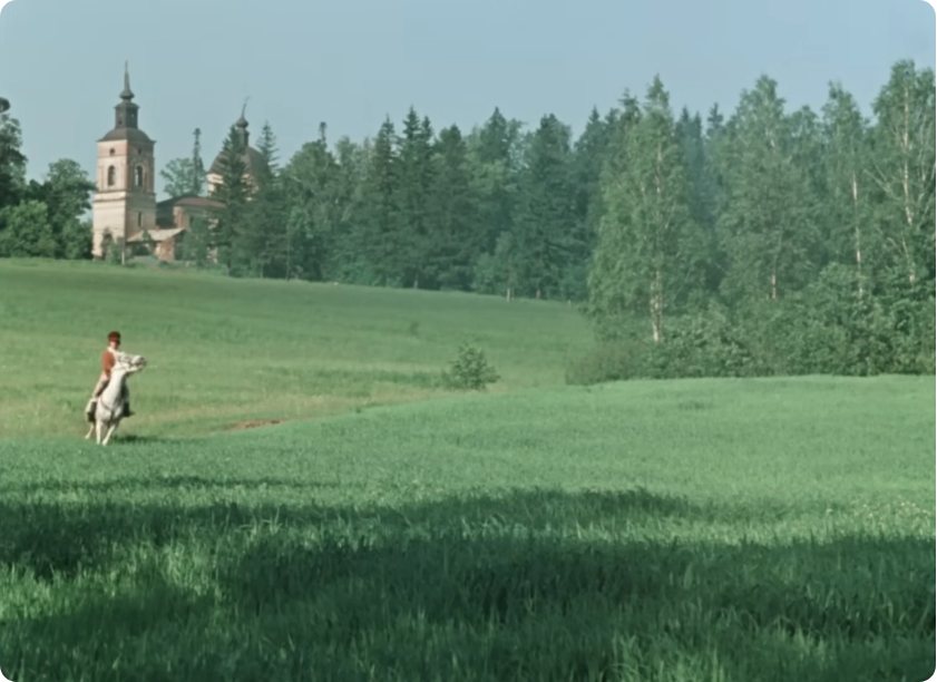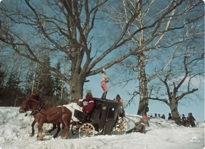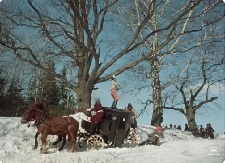 В самом начале фильма Шура Азарова скачет на лошади на по полю фоне красивого храма. Это Никольская церковь в селе Подъячево, расположенном в Дмитровском муниципальном округе Подмосковья.