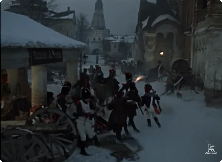 Наконец, городком, где французы остановились на ночлег, в фильме стал основанный в XIV веке Николо-Пешношский монастырь, находящийся в Луговом. В то время стены и постройки обители выглядели так, будто тут и впрямь недавно шли военные действия.