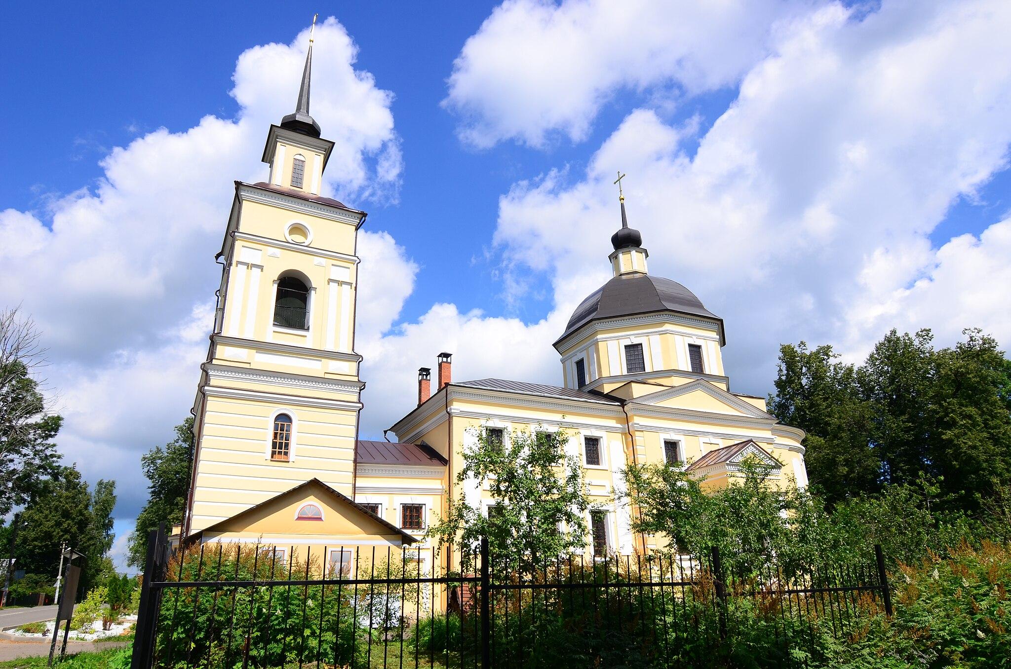 Храм был заложен в 1783 году на месте сгоревшей деревянной церкви. После революции церковь подверглась разграблению, а на момент съемок не действовала, но еще не выглядела обветшавшей. В начале 2000-х годов здание вернули РПЦ, а затем отреставрировали.