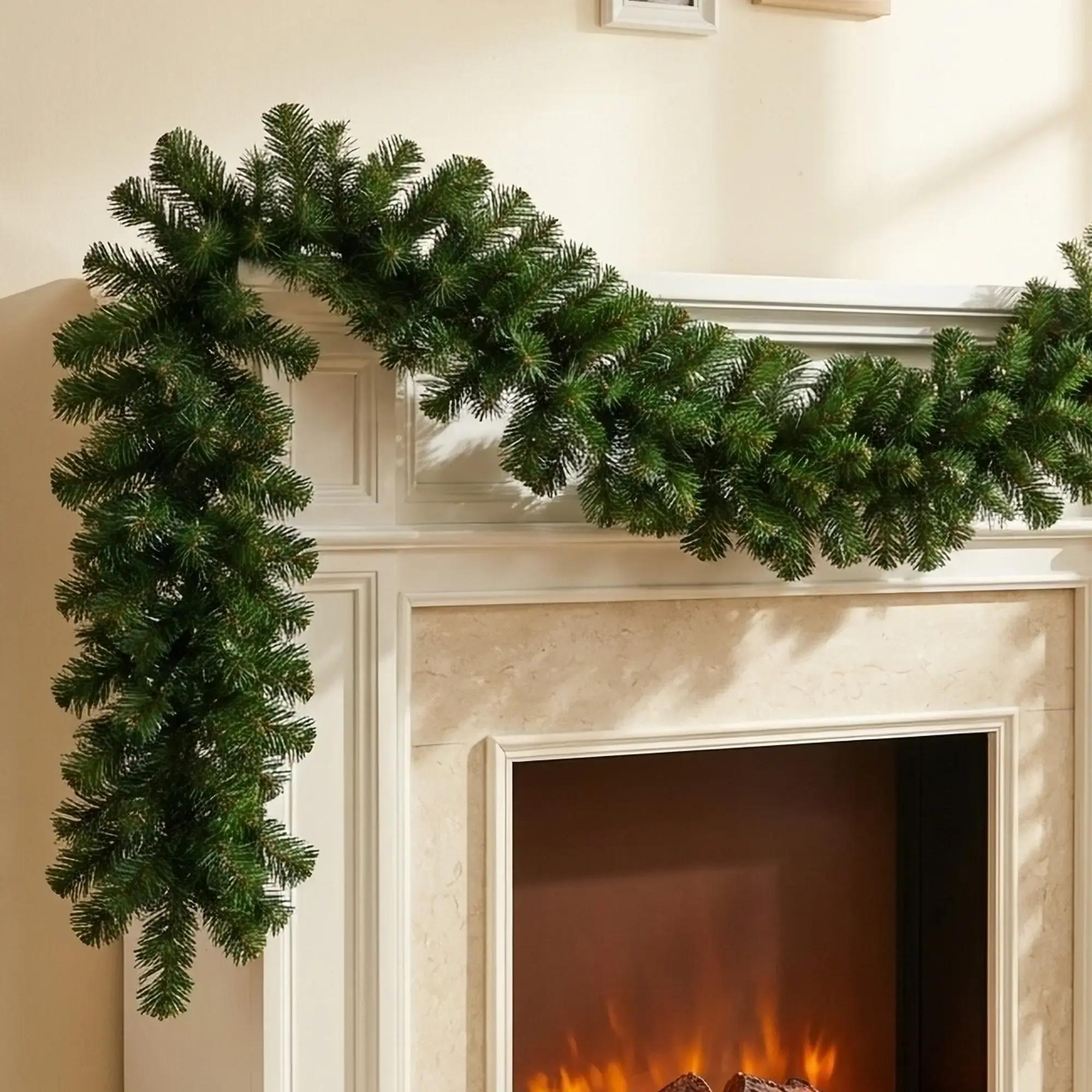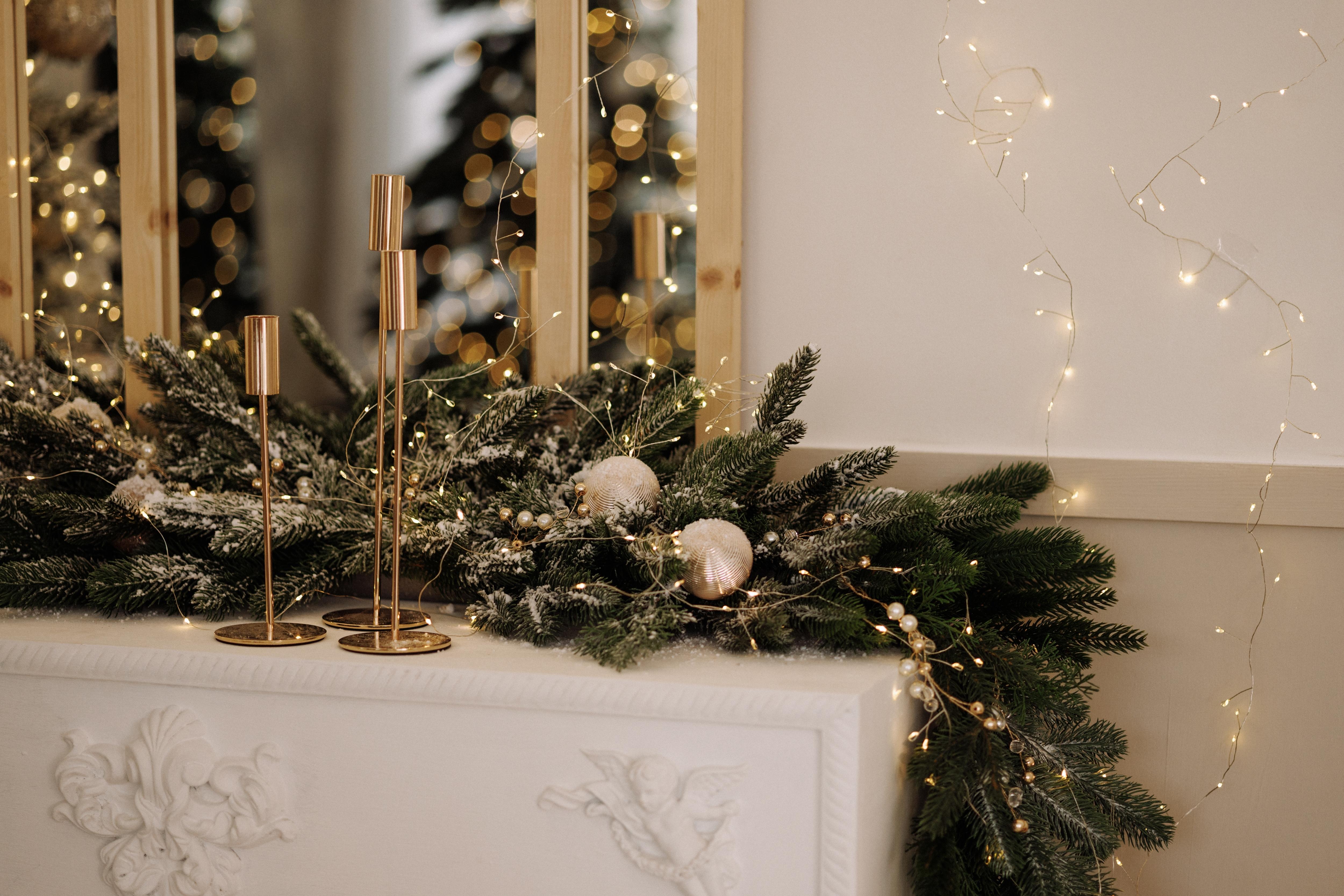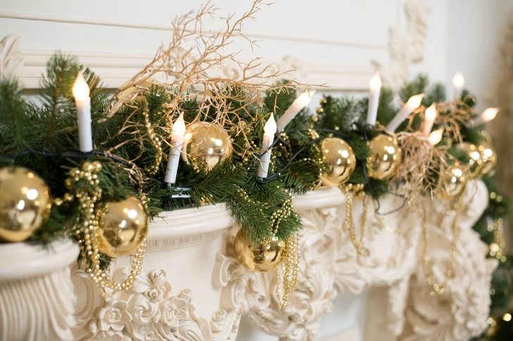 Хвойные гирлянды, как и электрические, можно разместить на любых горизонтальных поверхностях — например, на подоконнике, столе или полке камина. Они хорошо будут смотреться над дверным проемом или на карнизе. Закрепите гирлянду по краям двусторонним скотчем или крючками.