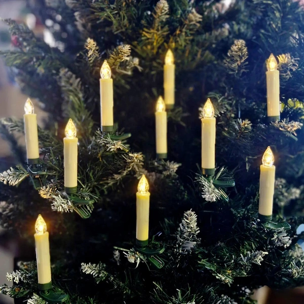 💡 Для украшения елки возьмите LED-свечи на батарейках. Они легко крепятся, реалистично мерцают и могут работать часами. А главное — это безопаснее обычных свечей. Набор обойдется примерно в 1000 рублей.