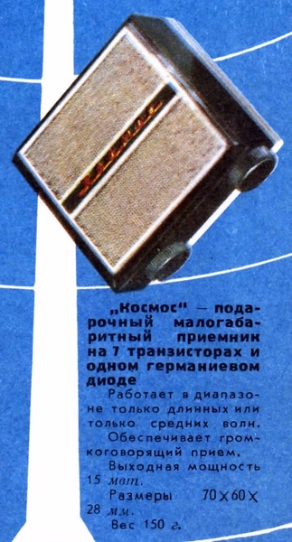 Портативный радиоприемник «Космос» (СССР, 1963 г.) с экспортным названием Yura — один из самых узнаваемых изобретений советских промышленных дизайнеров космической эпохи.