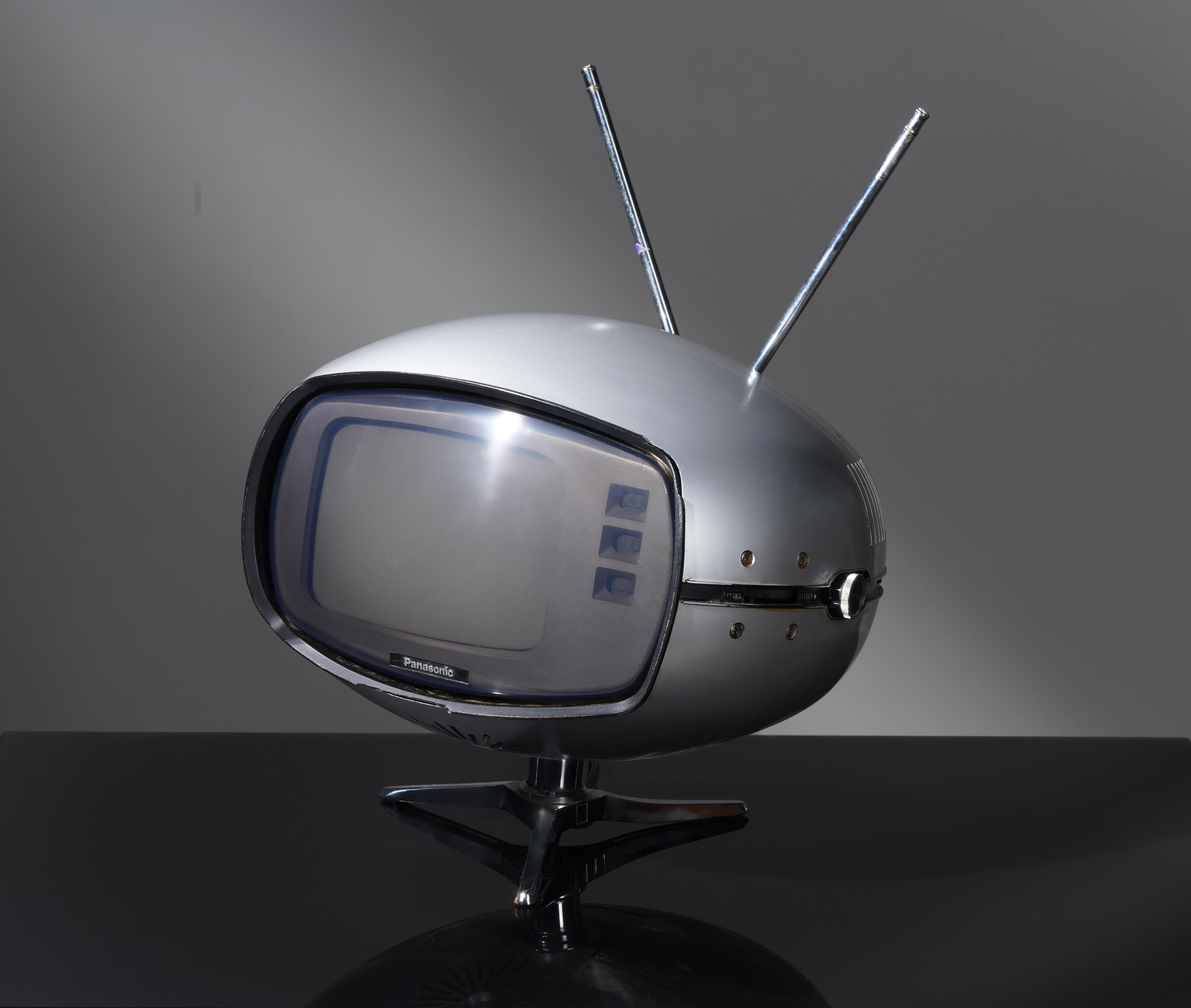 Еще один яркий представитель космического дизайна — Panasonic Orbitel. Телевизор напоминает летающую тарелку из-за овальной формы и антенн-усиков, верхнюю часть можно было вращать на 180 градусов, а еще был разъем для наушников. У рекламы этой модели был необычный слоган: «Внимание, Земляне!», поэтому телевизор еще называли «ТВ НЛО».