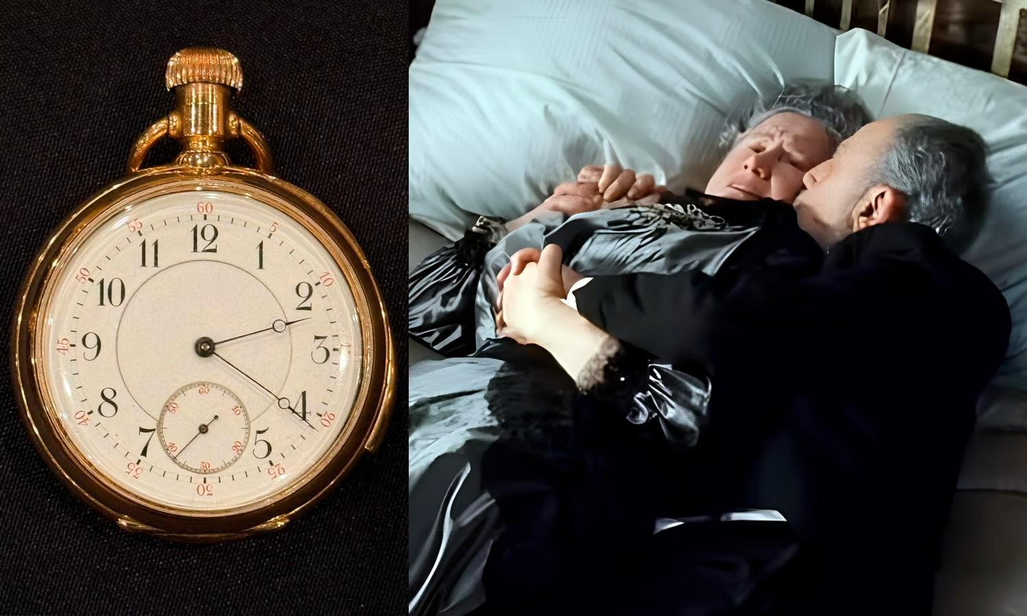 Как сообщает The Guardian, эти золотые карманные часы весят 18 карат. Изделие фирмы Jules Jurgensen принадлежало Исидору Штраусу — 67-летнему предпринимателю и совладельцу крупнейшей американской сети универмагов Macy's. Он получил их в подарок на свой 43-й день рождения в 1888 году.