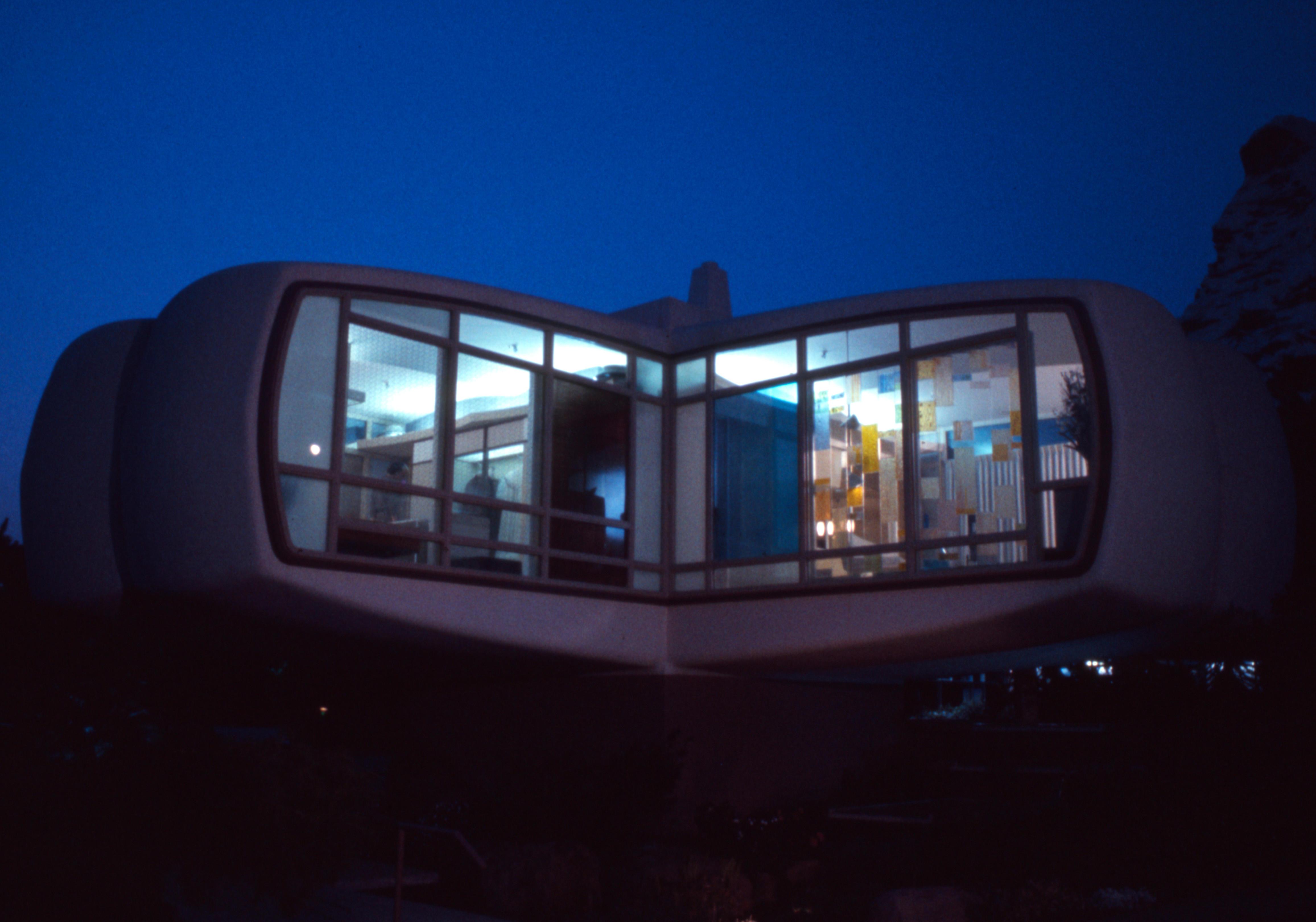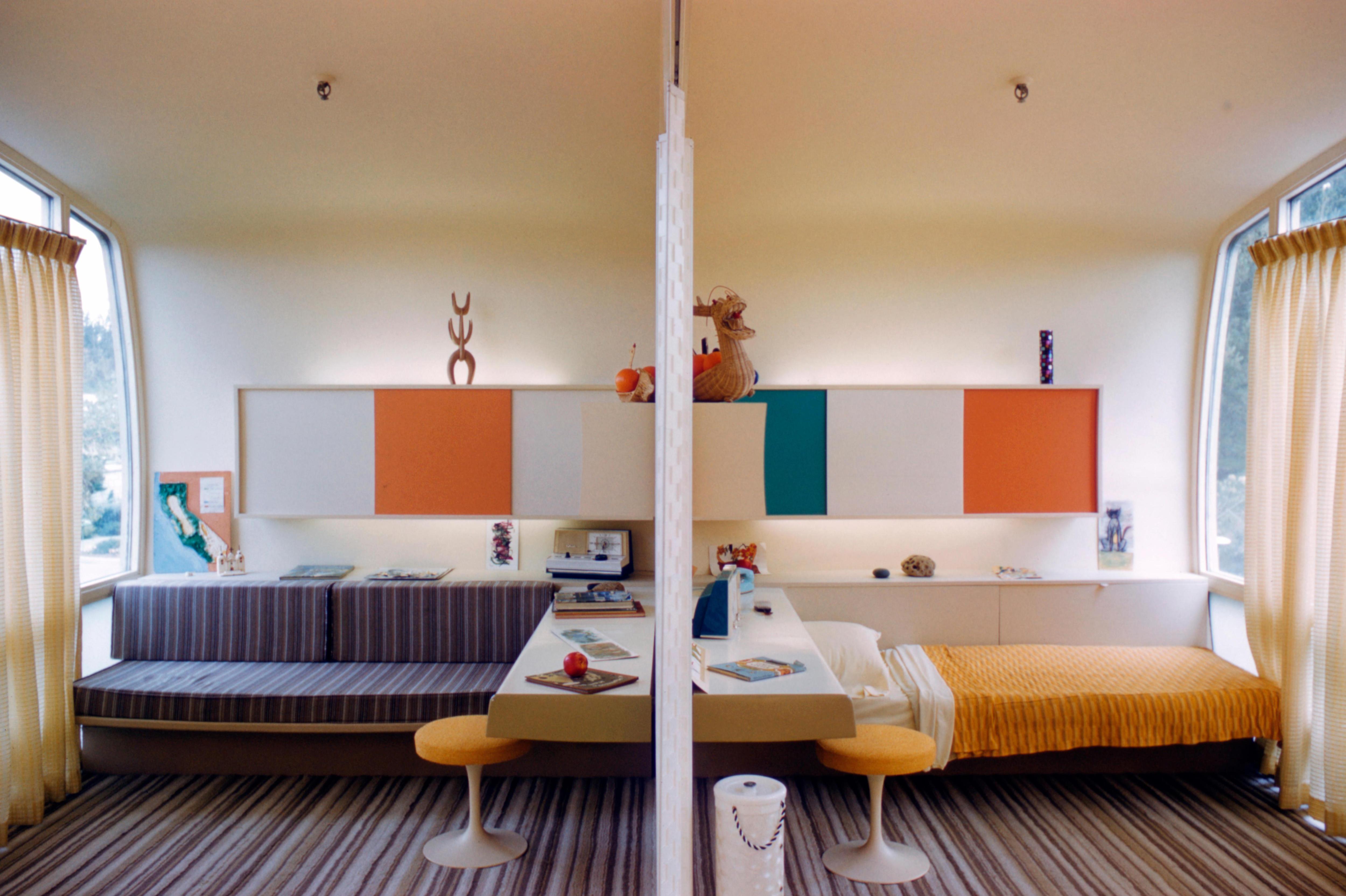 В центре дома располагались кухня и ванная комната, от них расходились четыре крыла — спальня, детская, гостиная и столовая. Модули из стеклопластика формировали потолок, пол и одну стену, а остальные стороны закрывали огромные окна. Благодаря такой конструкции в дом проникало обилие света.