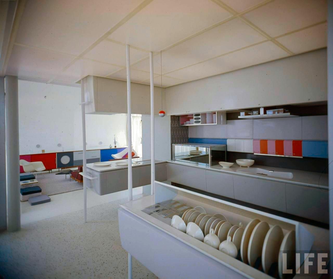Внутрь дизайнеры интерьера поместили самые современные технологии. Например, на кухне многие посетители впервые увидели микроволновую печь. Шкафы опускались с потолка нажатием кнопки. А вместо обычного холодильника была «холодная зона» с тремя отсеками.