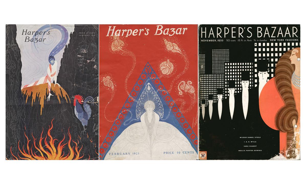 В журнальной графике Эрте отточил свою узнаваемую манеру, подавая пример другим художникам ар-деко. Позже, когда он стал выпускать серии шелкографий и увлекся литьем статуэток и рельефов из бронзы, несколько работ в этих техниках были созданы на основе обложек Harper’s Bazaar.