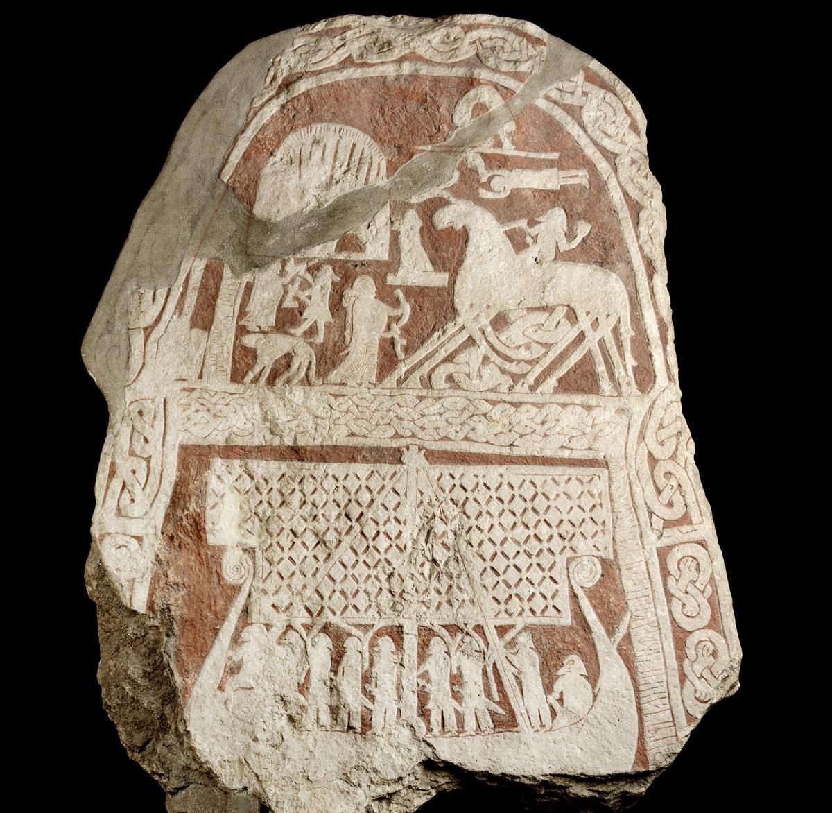 Стелы в память об умерших, необязательно на могиле, обычно воздвигали их родственники. На этом поминальном камне, посвященном некоему Хьёрульфу, по основной версии, запечатлены представления о посмертии.