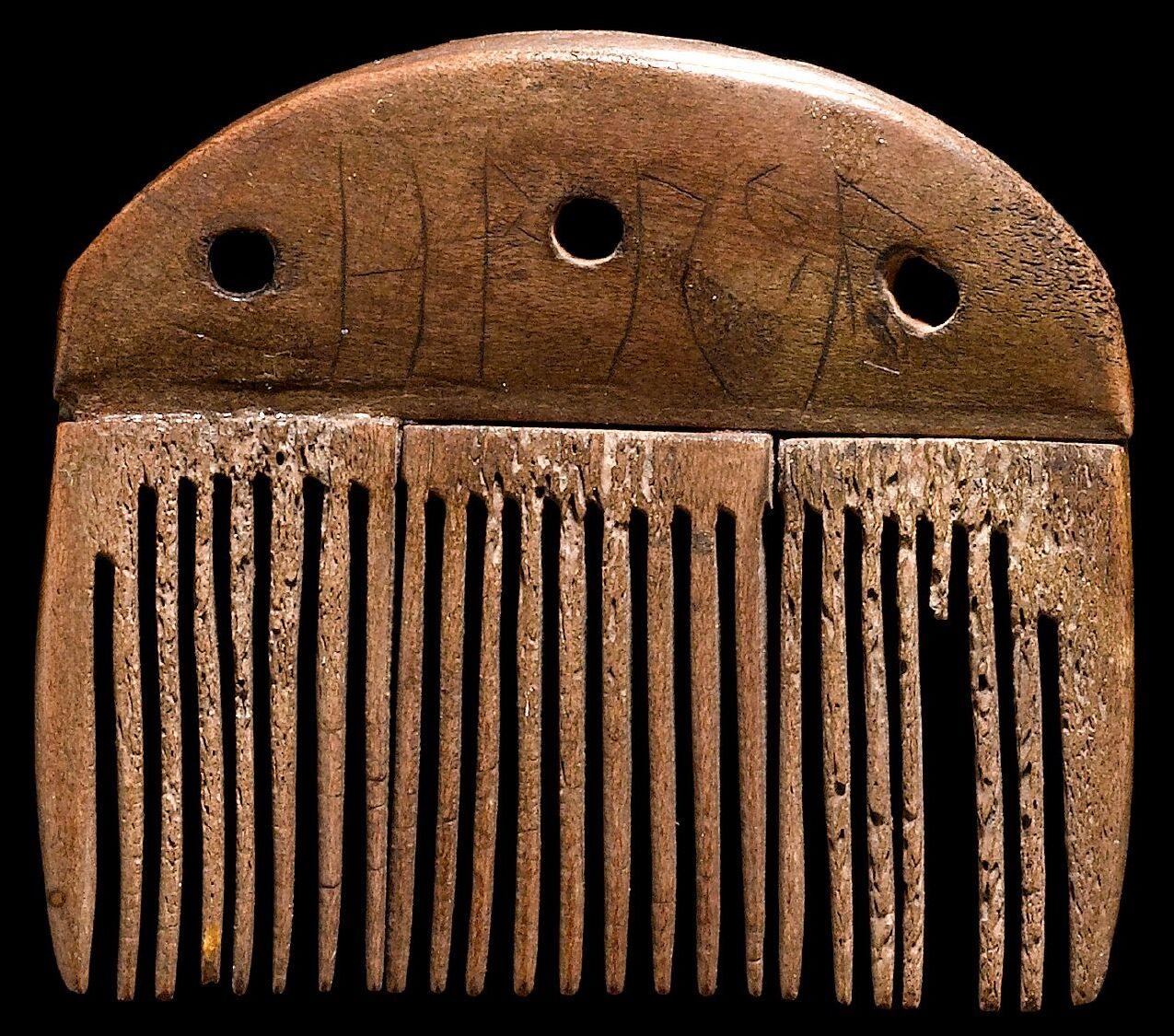 Однако скандинавский рунический алфавит гораздо старше эпохи викингов. Одна из древнейших скандинавских надписей рунами сохранилась на гребне, найденном в Вимосе на острове Фюн в Дании. Его датируют примерно 160 годом н. э. На гребне написано harja — возможно, это имя владельца.