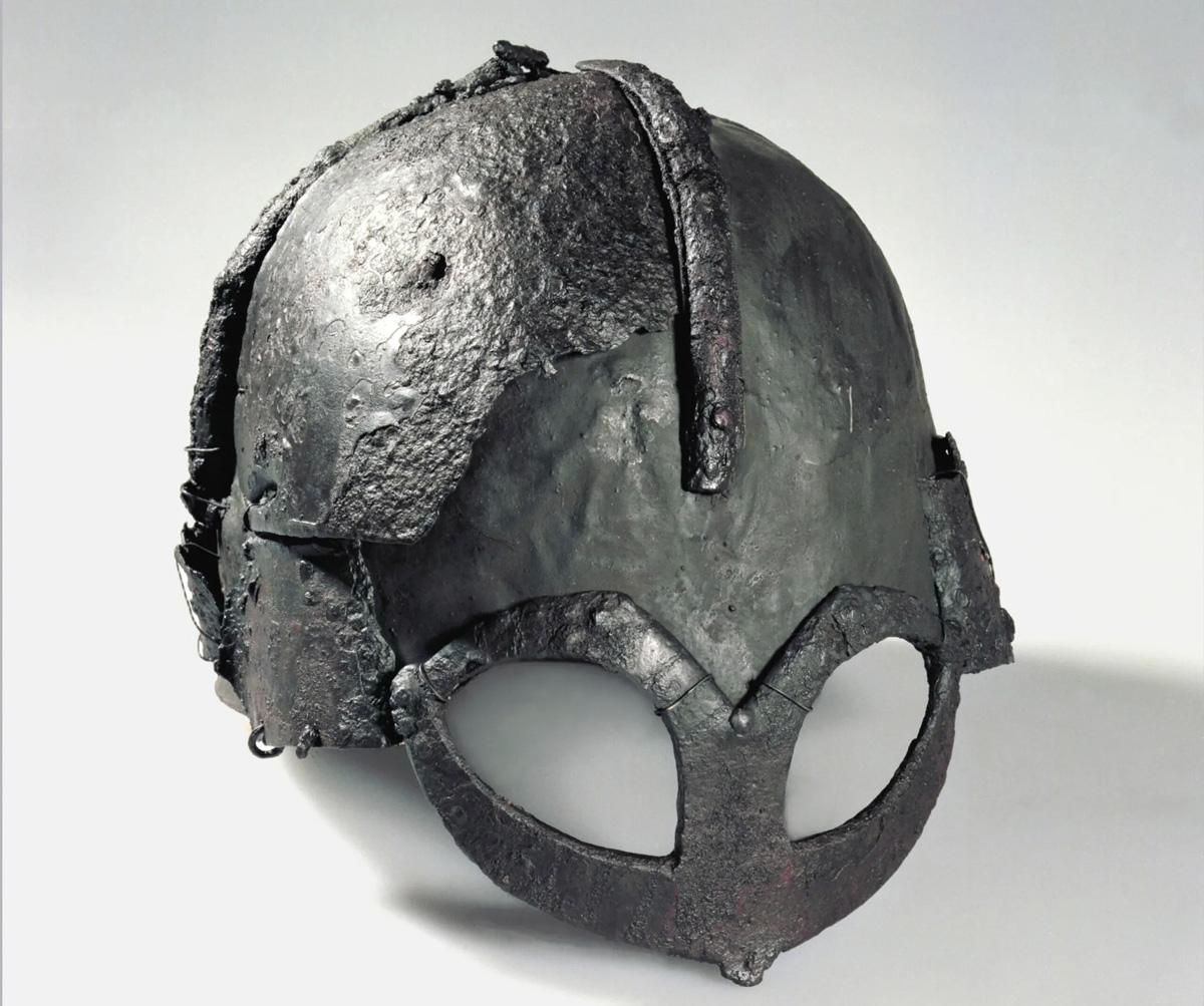 Остатков скандинавских шлемов эпохи викингов найдено очень мало, и этот артефакт из Норвегии — один из двух, сохранившихся настолько, что их внешний вид можно реконструировать. В конце X века его положили в могилу богатого викинга. На шлеме с полумаской не предусмотрены рога: вопреки популярному заблуждению, нет никаких подтверждений, что викинги такие носили.