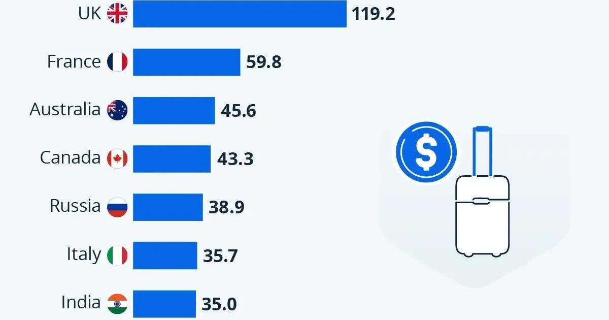 Любое путешествие сопряжено с расходами, пусть даже некоторые туристы и пытаются сэкономить каждую копейку. Тем не менее в совокупности путешественники из крупных стран ежегодно тратят в поездках десятки и даже сотни миллиардов долларов. Масштабы этих расходов в 2024 году отражает свежая инфографика, подготовленная порталом Statista с опорой на данные Всемирной организации туризма (UN Tourism).