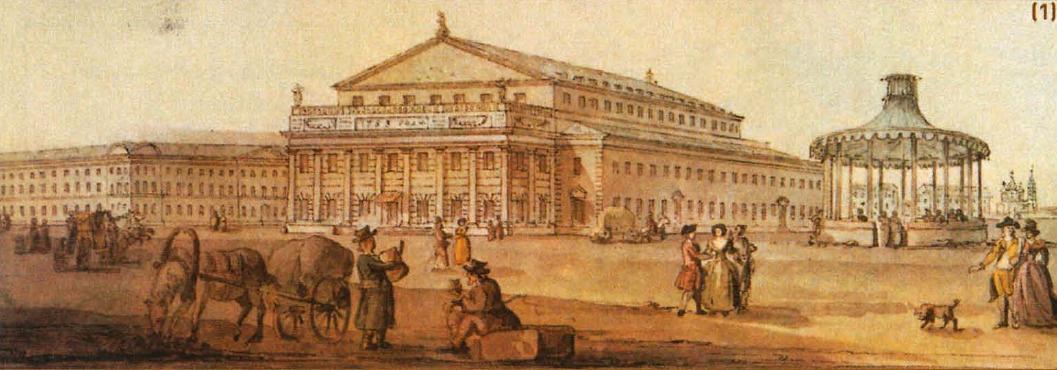 В начале 1780-х годов в Петербурге открылся каменный Большой театр, поразивший всех своей величиной и внутренним убранством. Современник писал: «Театр построен в новом роде, совершенно еще не известном в здешнем краю. Сцена очень высока и обширна, а зала, предназначенная для зрителей, образует три четверти круга».