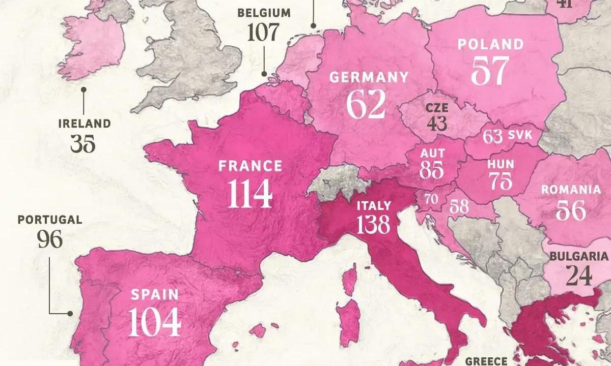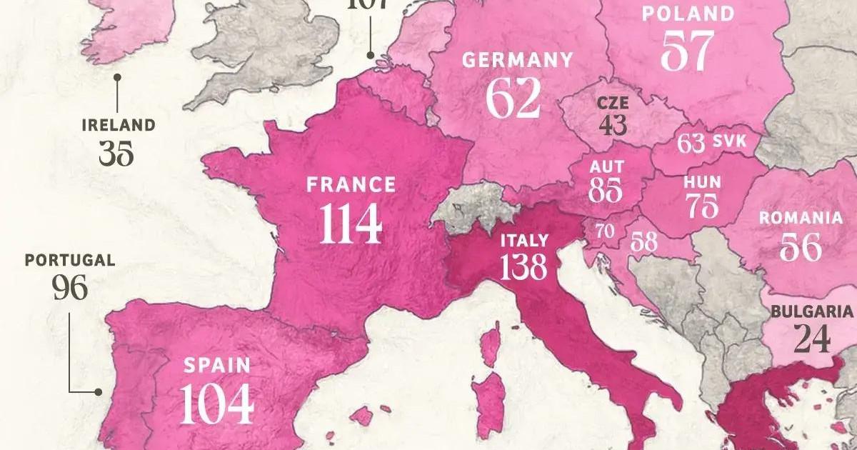 На инфографике выше, подготовленной порталом Visual Capitalist, приведены размеры госдолга стран Европейского союза в процентах от их валового внутреннего продукта (ВВП). Авторы инфографики опирались на данные организации Eurostat по состоянию на первый квартал 2025 года.