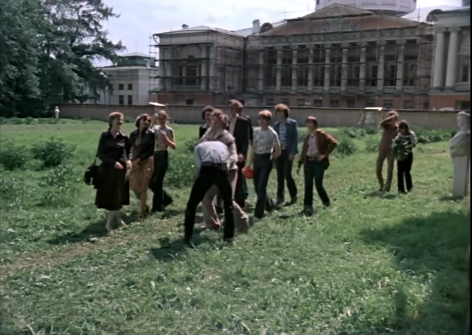 Прогулку школьников в парке в погожий сентябрьский день снимали возле усадьбы Останкино — на экране мелькают покрытое строительными лесами здание усадьбы и Останкинская телебашня. Сюда же потом Рома и Катя приходили вдвоем.