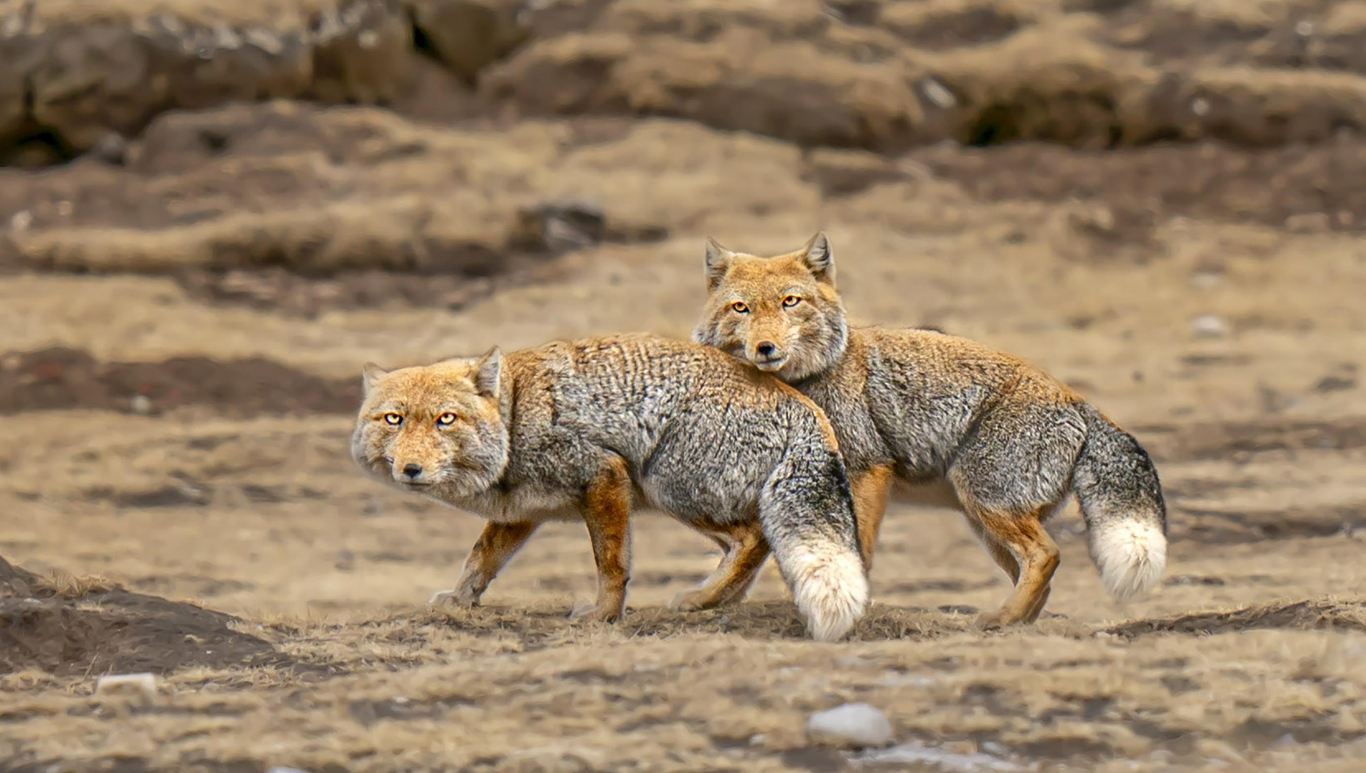 Интересно, что тибетские лисы живут и охотятся парами. Они моногамны — выбирают партнера на всю жизнь и не меняют его, если только один из пары не погибает. Пара живет вместе, охотится вместе, растит детенышей вместе.