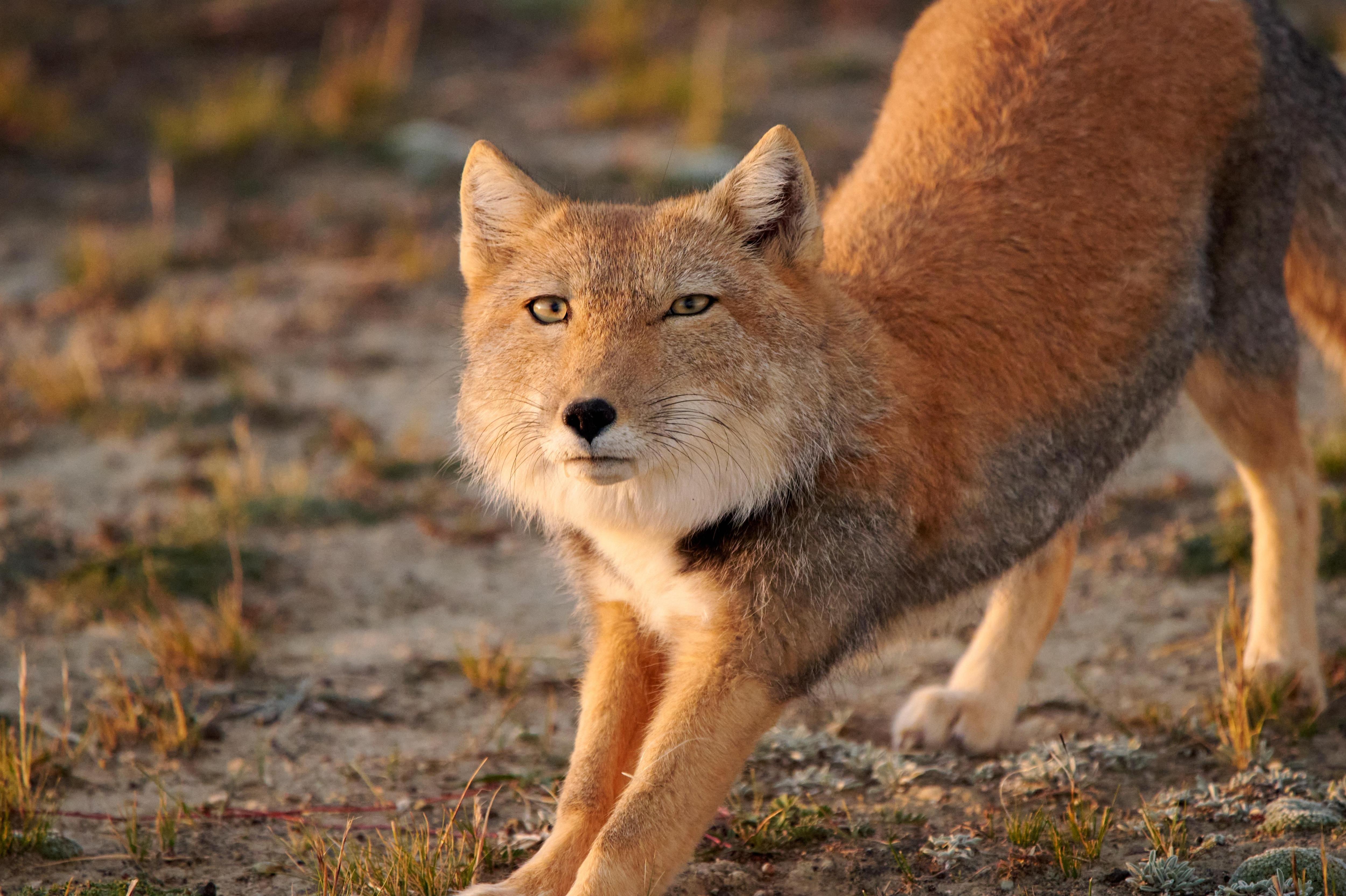 Есть теория, что плоская морда помогает лисе легче переносить сильные ветры на открытых местах — так более аэродинамично. Кроме того, у тибетской лисы самые длинные клыки среди всех лис — они нужны для эффективной охоты на грызунов.