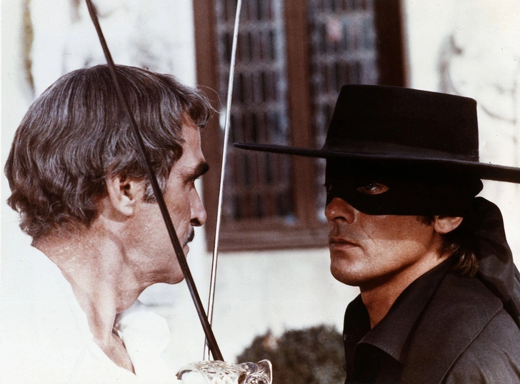 Ален Делон в роли легендарного героя в черном плаще и маске даже при желании не смог бы избежать успеха. По сюжету испанец Диего де ла Вега приезжает в провинцию Новый Арагон под видом губернатора и обнаруживает, что власть узурпирована жестоким полковником Уэртой.