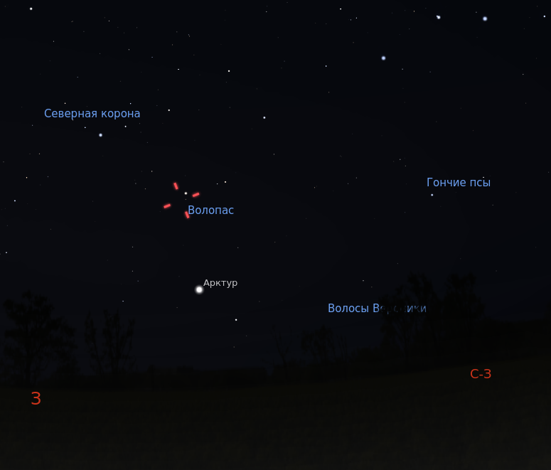 16 октября C/2025 A6 (Lemmon) окажется рядом с самой яркой звездой из Гончих Псов, называемой Сердцем Карла. В последней декаде октября комета пройдёт вблизи звезды Изар из созвездия Волопаса.