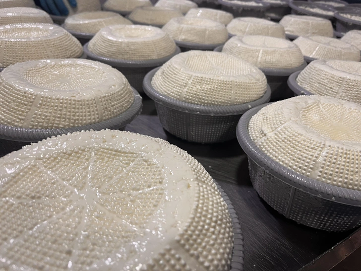 Сейчас в цехах Tsivis Kveli трудятся 13 человек, включая основателя — дедушку Гиви. С помощью специального дуршлага он постоянно переворачивает сырные головы, чтобы продукт не осел, а принял нужную форму.