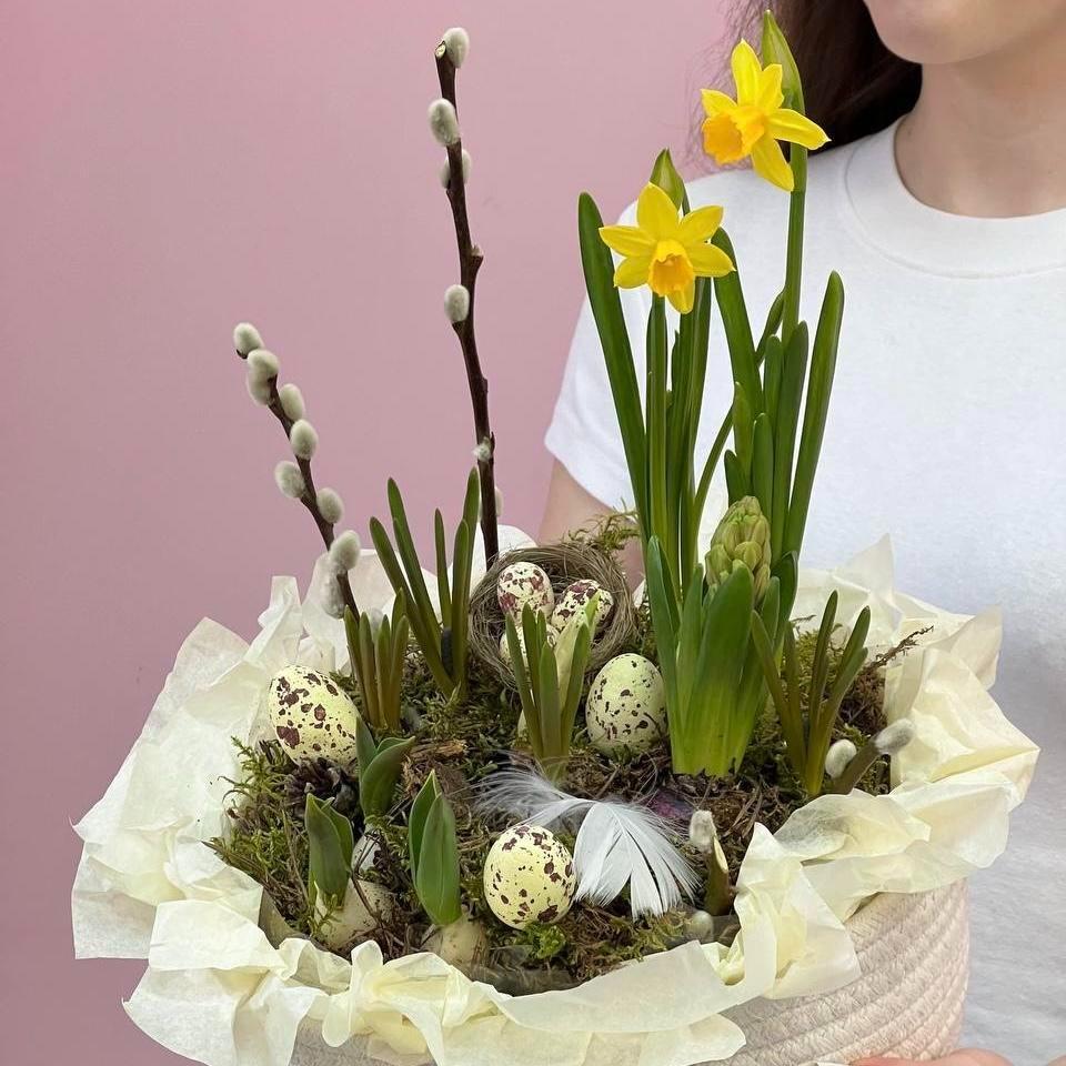 Добавить в сервировку свежести помогут сезонные цветы. В русской эстетике для декора чаще используют ромашки, маки или ландыши. Для украшения на Пасху особенно подойдут луковичные растения — гиацинты, нарциссы, мускари или карликовые тюльпаны— как символ весны и обновления. Их можно поставить прямо в кашпо в центре стола.